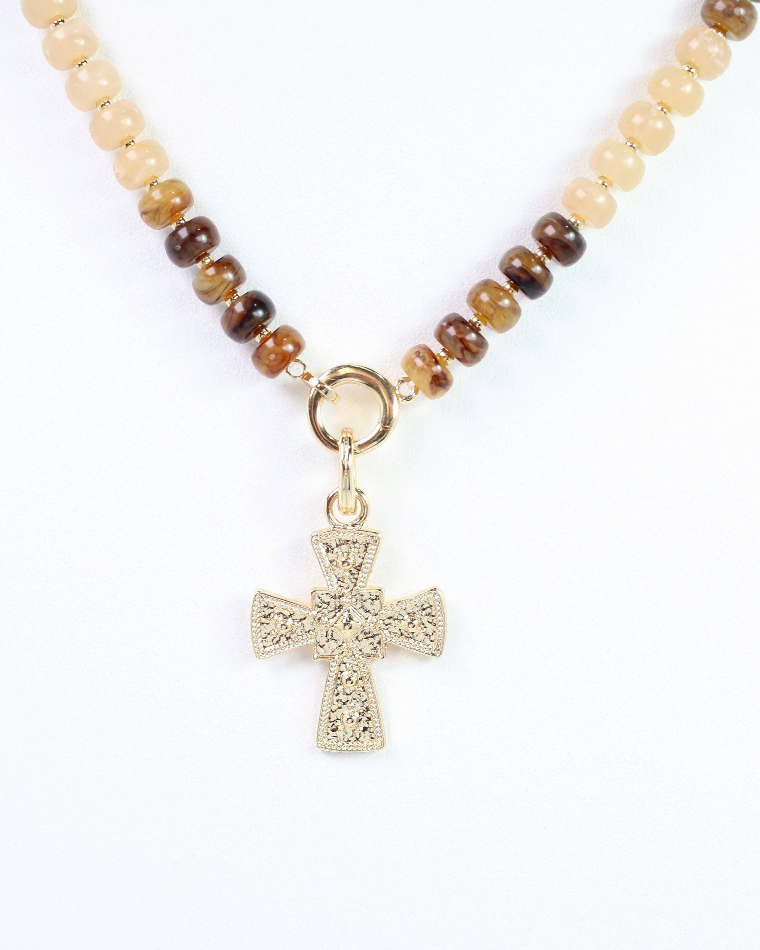 Add a touch of timeless charm with the Bankston Cross Charm in Gold. Featuring a hinged clasp and a textured old-world cross design, this playful accessory effortlessly blends vintage vibes with modern style. Perfect for layering or wearing solo, it’s a delightful way to brighten your look with a hint of history and sparkle.