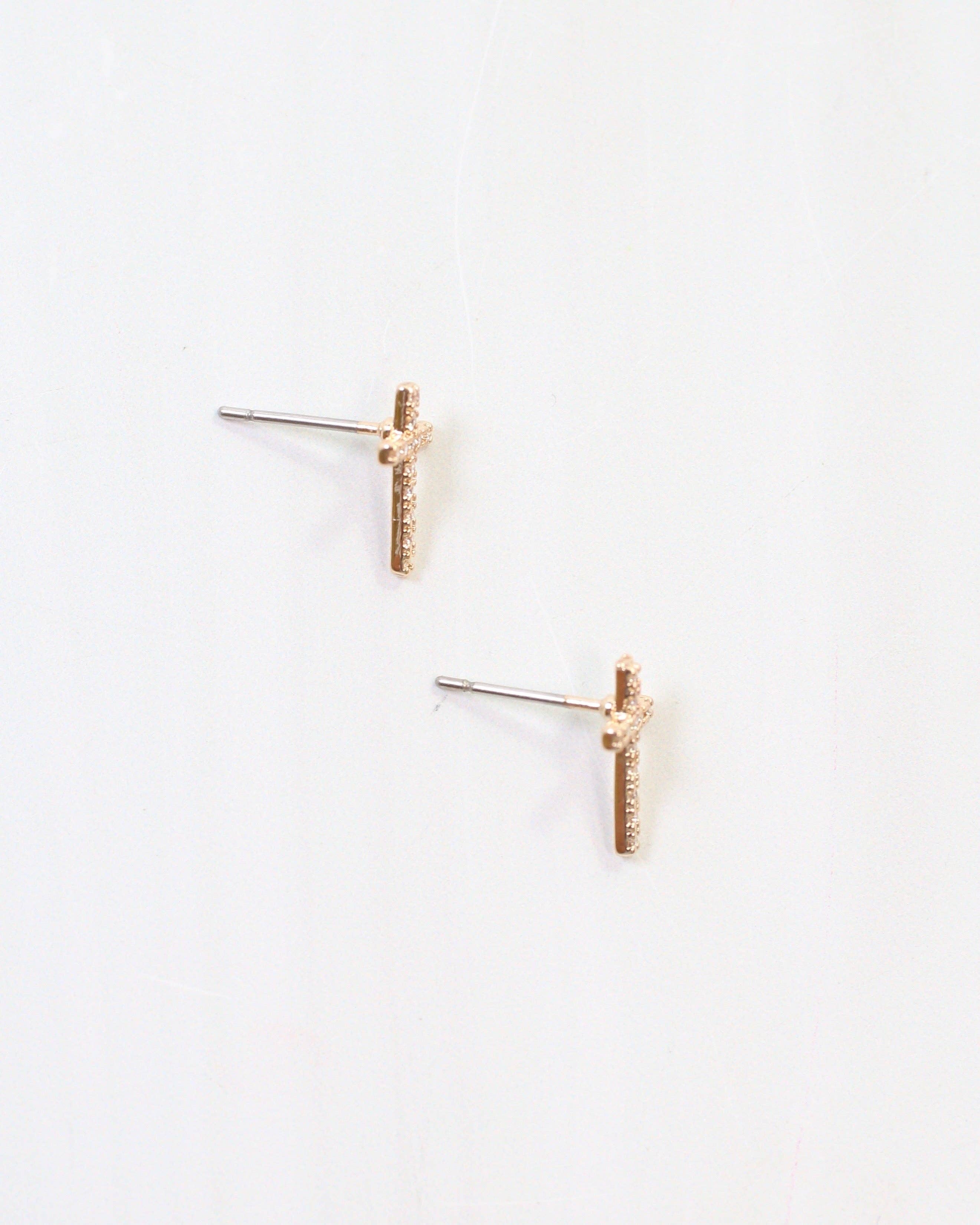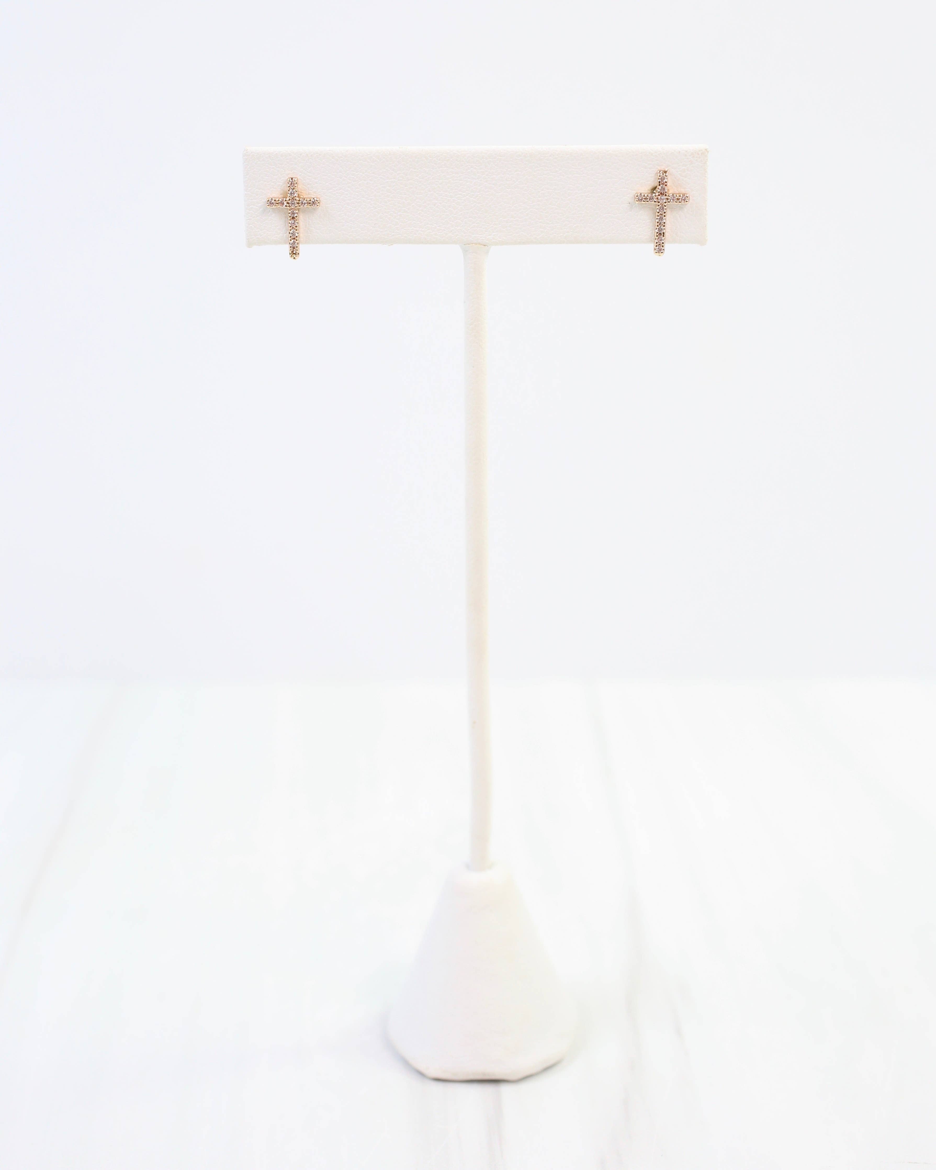 These Colorado Cross and Crystal Stud Earrings in gold feature delicate cross designs adorned with sparkling CZ stones. Their subtle shine and refined style make them perfect for adding a touch of elegance to any outfit, whether for everyday wear or special occasions. Lightweight and dainty, they effortlessly enhance your look with a modern, fashionable edge.