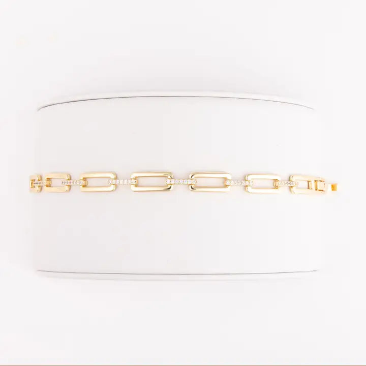 Meet your new favorite accessory! The Marley Bracelet combines timeless elegance with a modern twist, featuring a delicate rectangular link chain in luxe 18k gold plating adorned with sparkling cubic zirconia accents. Whether you're dressing up for a special occasion or adding pizzazz to your everyday ensemble, this beauty is sure to make you feel absolutely fabulous!