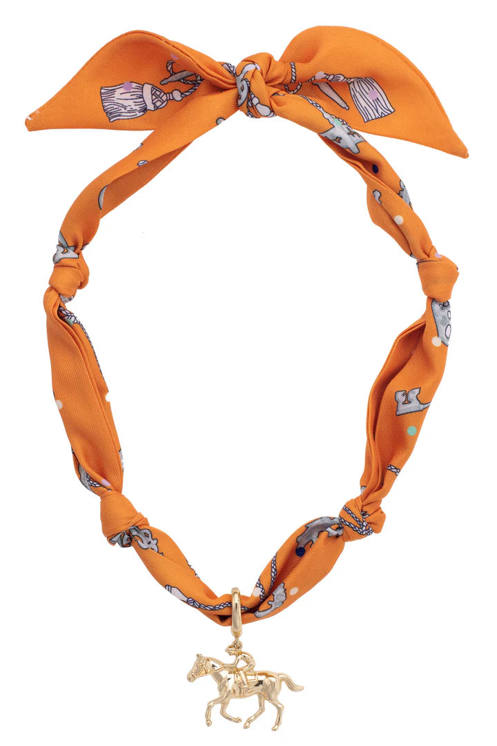Bring some spirited fun to your look with the Riders Up Scarf Necklace in Orange. This vibrant accessory combines the flair of a scarf with the adventurous touch of equestrian-inspired design. Perfect for adding a pop of color and personality, it’s ready to ride alongside your favorite outfits with a playful twist.