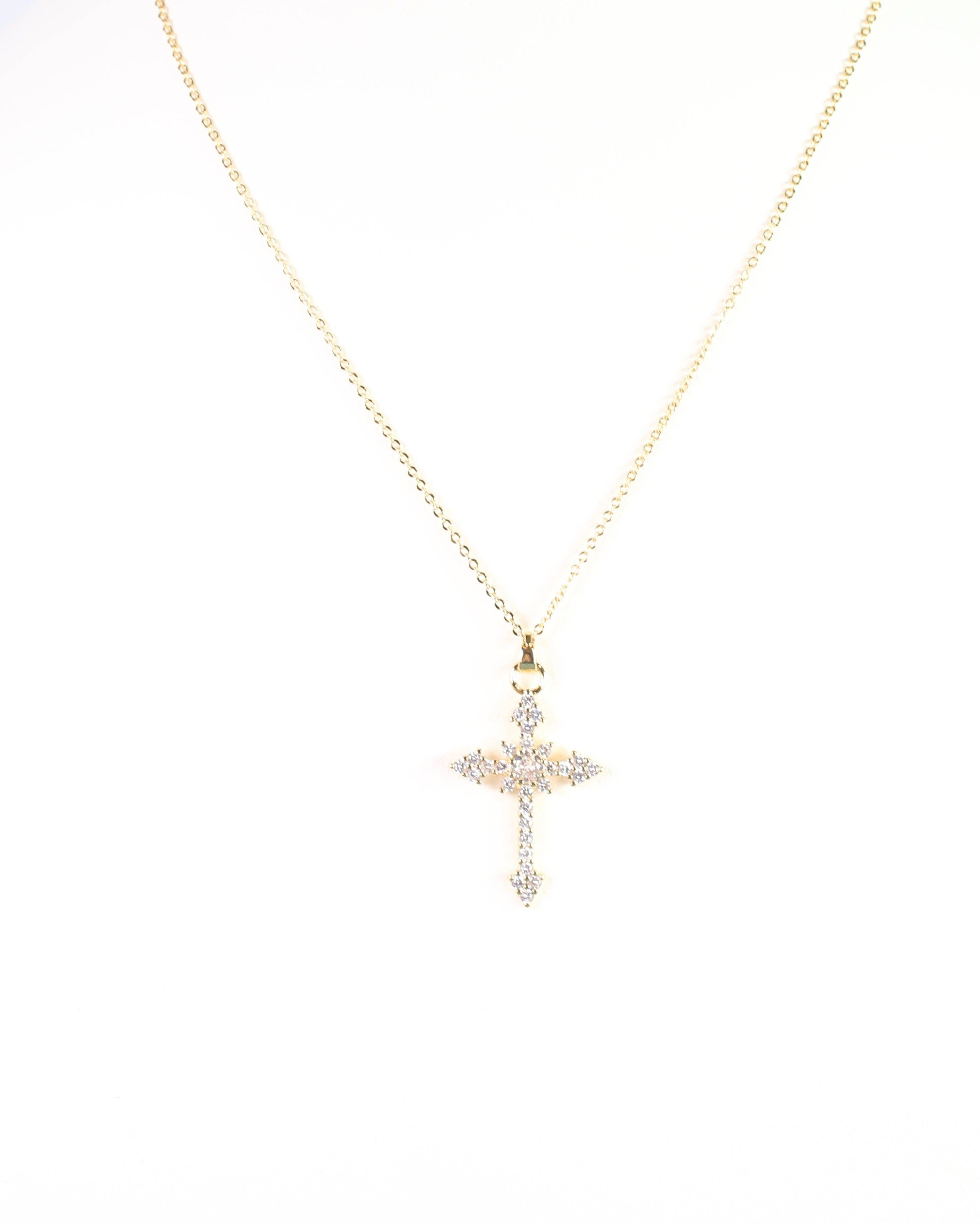 This sparkling Serenity CZ Cross Necklace in gold is designed to dazzle solo or shine layered with your favorite pieces. Its glittering CZ stones catch the light perfectly, making it a bold statement all on its own—or a charming complement to your collection. Add a little sparkle and a lot of style to any outfit!