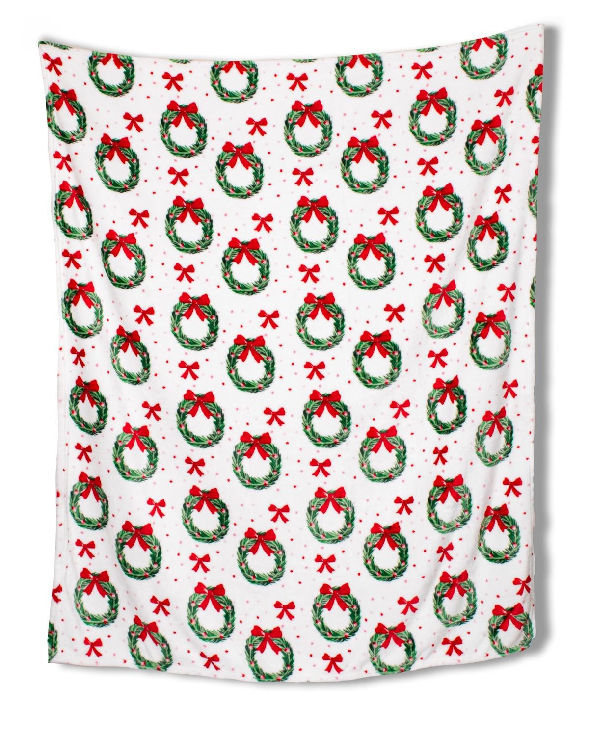 Wrap yourself in cozy holiday cheer with the Clara Wreath Throw. Measuring 50x60 inches, this soft red and green blanket features a charming wreath design that adds a festive touch to any room. Perfect for snuggling up during chilly evenings or brightening your seasonal décor with a sweet and bubbly vibe.