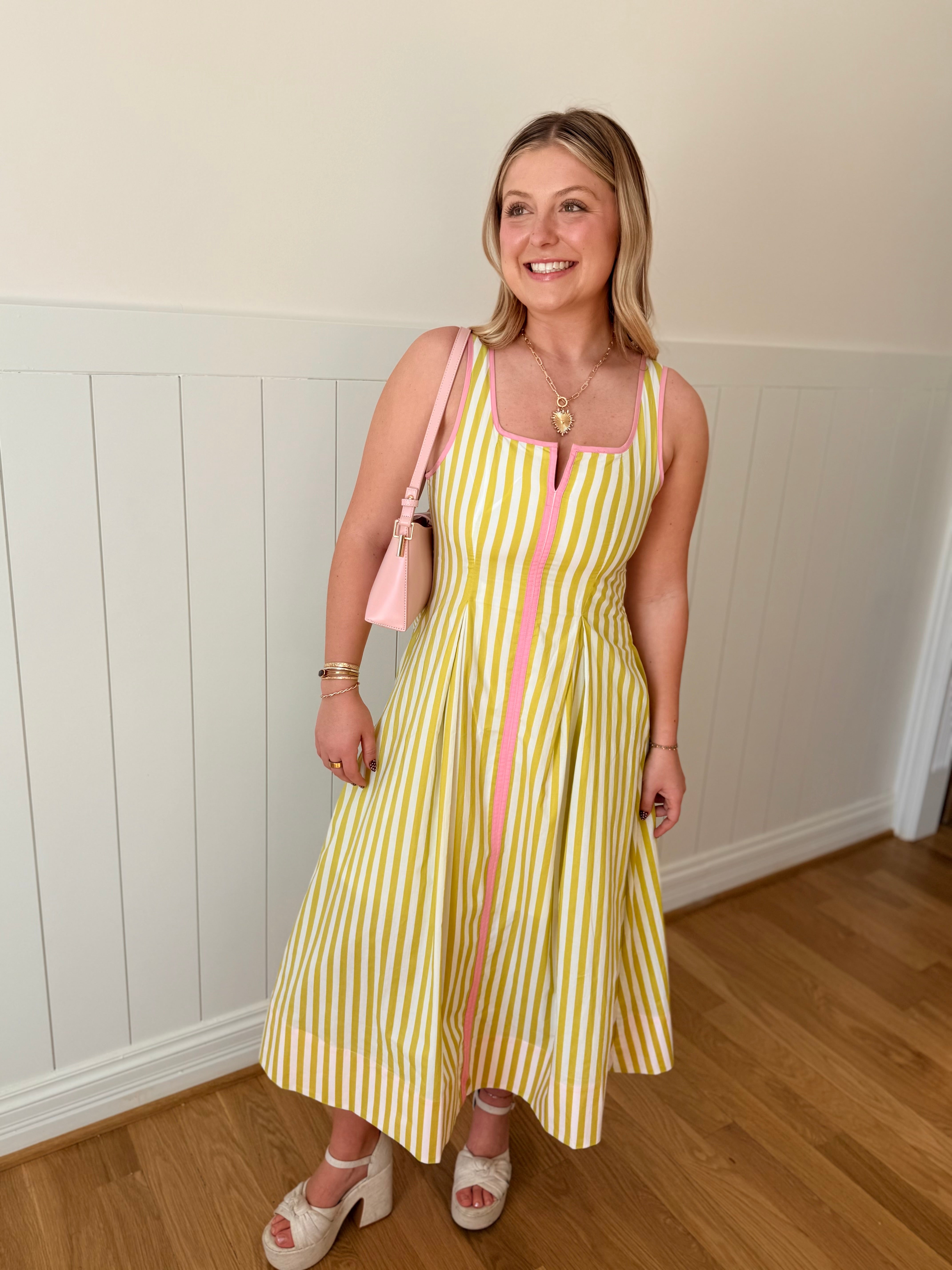 Step into a world of color and style with the Dreams Are Made of Dress! This bright, vibrant stripe midi dress features a convenient side zipper for easy wear. Embrace your inner fashionista and let the lively design elevate your wardrobe, making every moment feel special and inspiring!