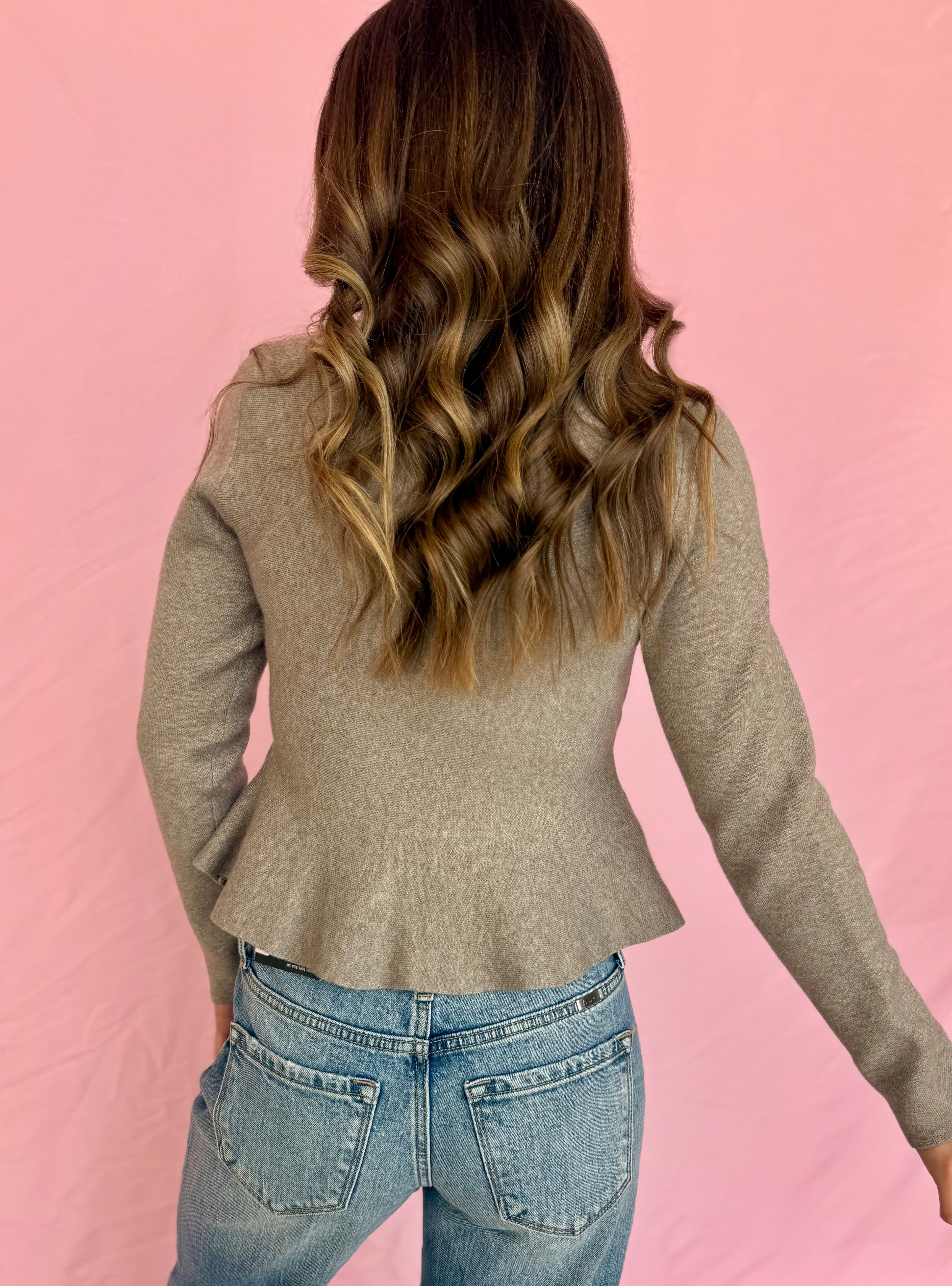 The Feminine Charm Top is a delightful blend of cozy and chic with its soft grey fabric and adorable gold button details. The long sleeves and flattering peplum shape add a sweet touch, making it perfect for brightening up any outfit. This top brings a bubbly charm to your everyday style while keeping things effortlessly cute and comfortable!