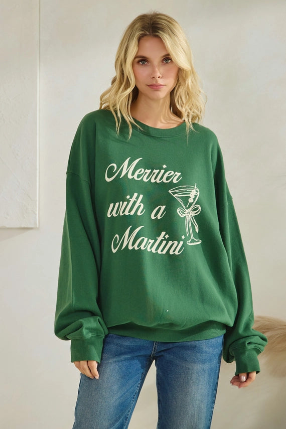 Cozy up in the Merrier With A Martini Sweatshirt, perfect for those who love a little sparkle with their comfort. This soft, stylish sweatshirt features a playful graphic that adds charm to your casual look. Ideal for relaxing weekends or catching up with friends, it’s your go-to for warmth and a touch of fun. Embrace the sweet and bubbly vibe every time you wear it!