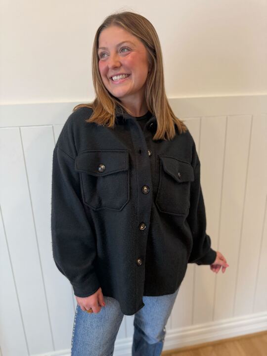 Meet your new favorite layering piece—this fabulous black oversized button-up shacket! With its relaxed, roomy fit and classic black color, this shacket is the ultimate versatile essential that works with literally everything. Button it up for a polished look or wear it open over your favorite tee for effortless cool-girl vibes. Whether you're grabbing coffee, heading to work, or just want to add an extra layer of style to your outfit, this shacket delivers comfort and chic in one adorable package. You're going to reach for this beauty again and again!