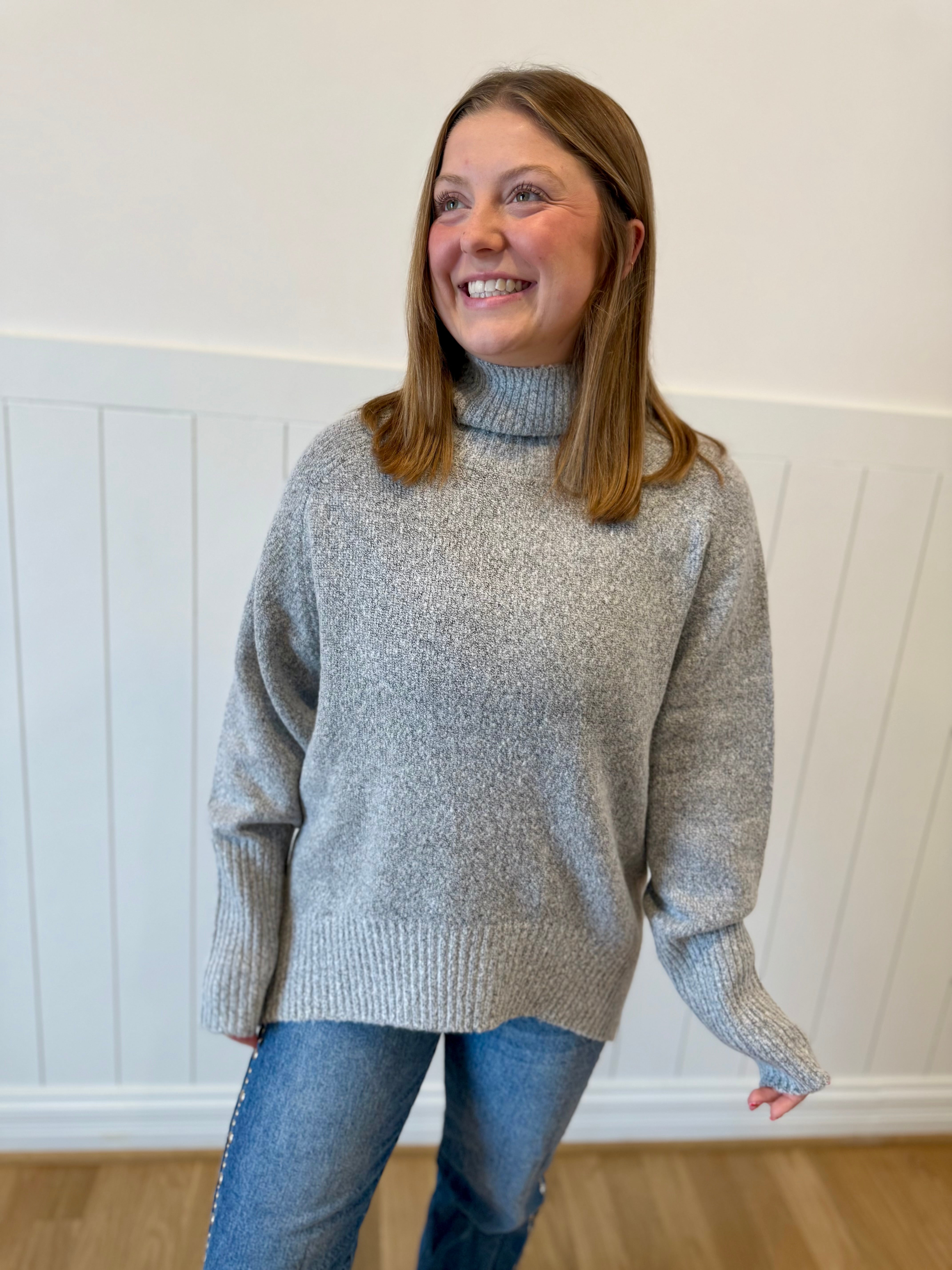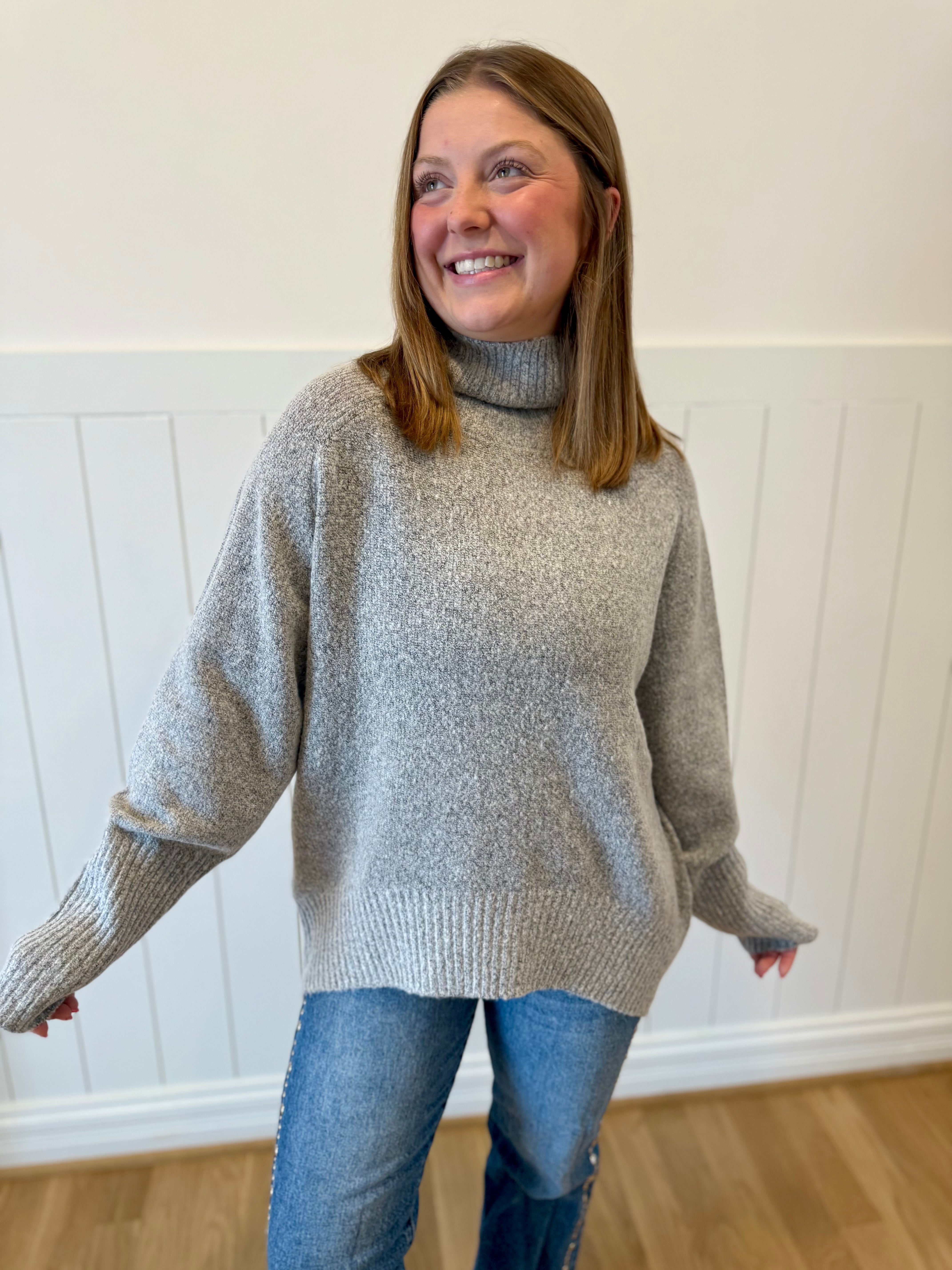 Snuggle up in timeless elegance with this gorgeous grey turtleneck sweater! The classic silhouette and soft, luxurious knit make it the ultimate wardrobe essential that works with absolutely everything. Layer it under slip dresses, pair it with your favorite jeans, or wear it solo for an effortlessly chic look. The cozy turtleneck keeps you warm and toasty while adding that sophisticated touch to any outfit. This is the sweater you'll reach for again and again because it's simply perfect!