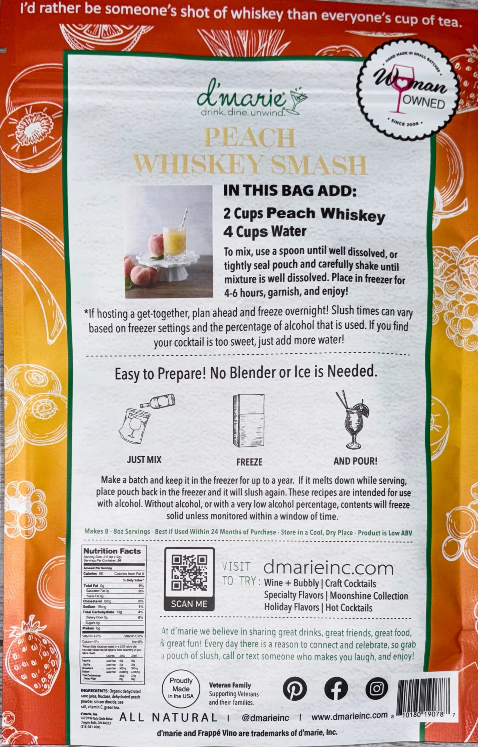Our Peach Whiskey Smash Slush Mix is made with real Peaches!
