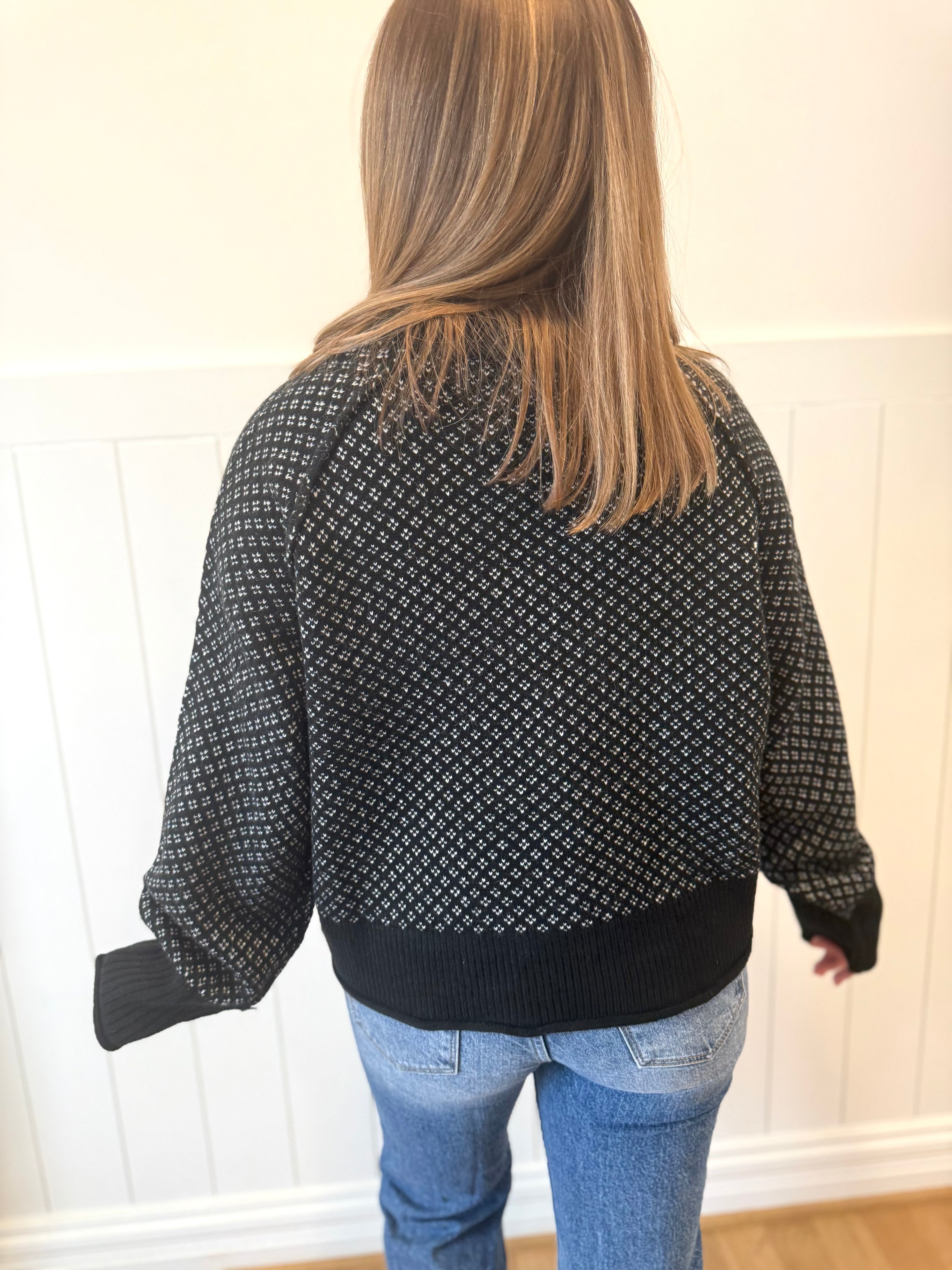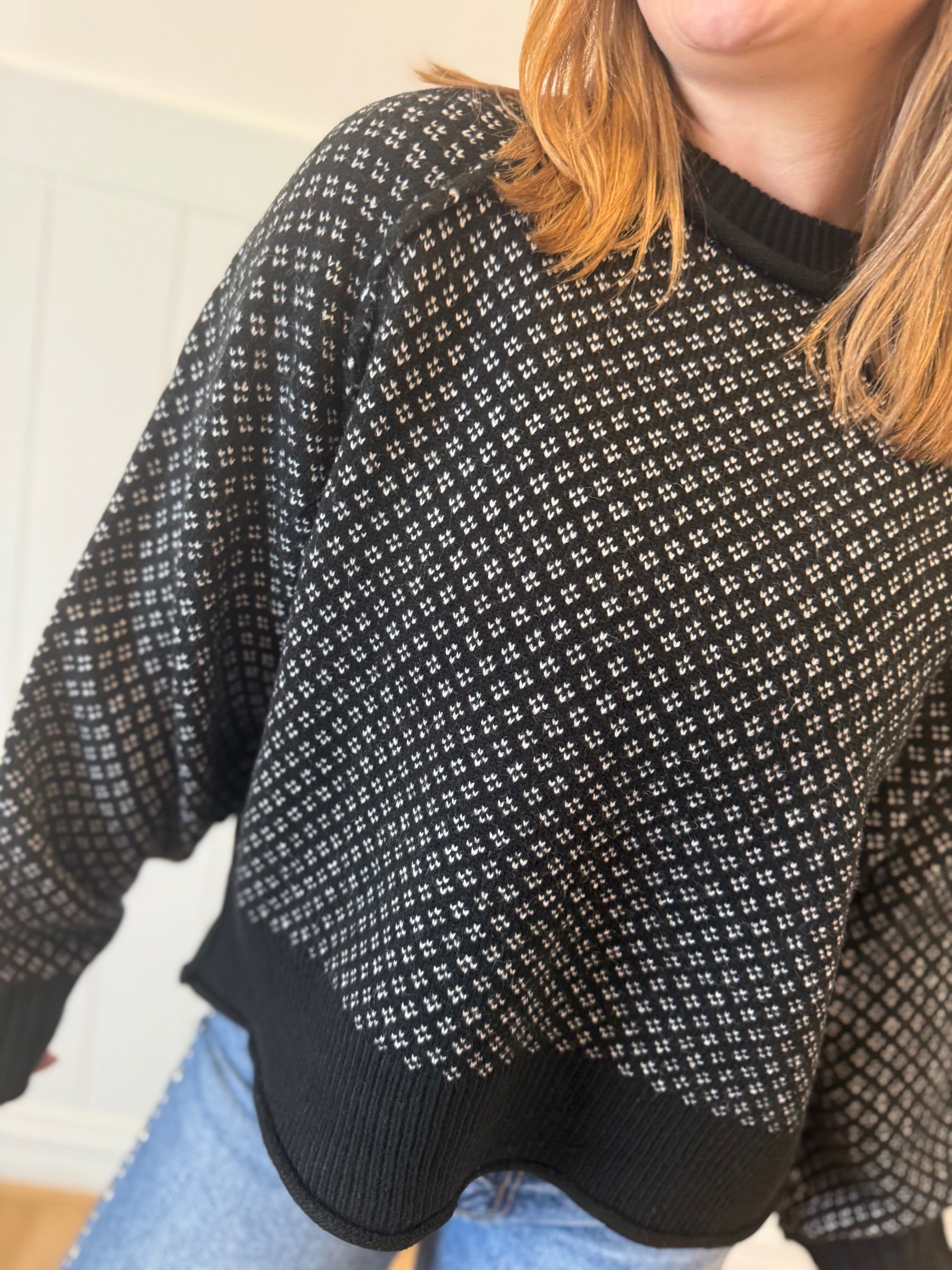 This chic black sweater with delicate white details is about to become your go-to favorite! The classic black base pairs perfectly with charming white accents that add just the right amount of visual interest and sophistication. Soft, comfortable, and endlessly versatile, this sweater works beautifully with everything in your closet—dress it up or keep it casual. Whether you're layering it for warmth or wearing it as your main statement piece, you'll love how effortlessly elegant and put-together you look. Pure sweetness in sweater form!
