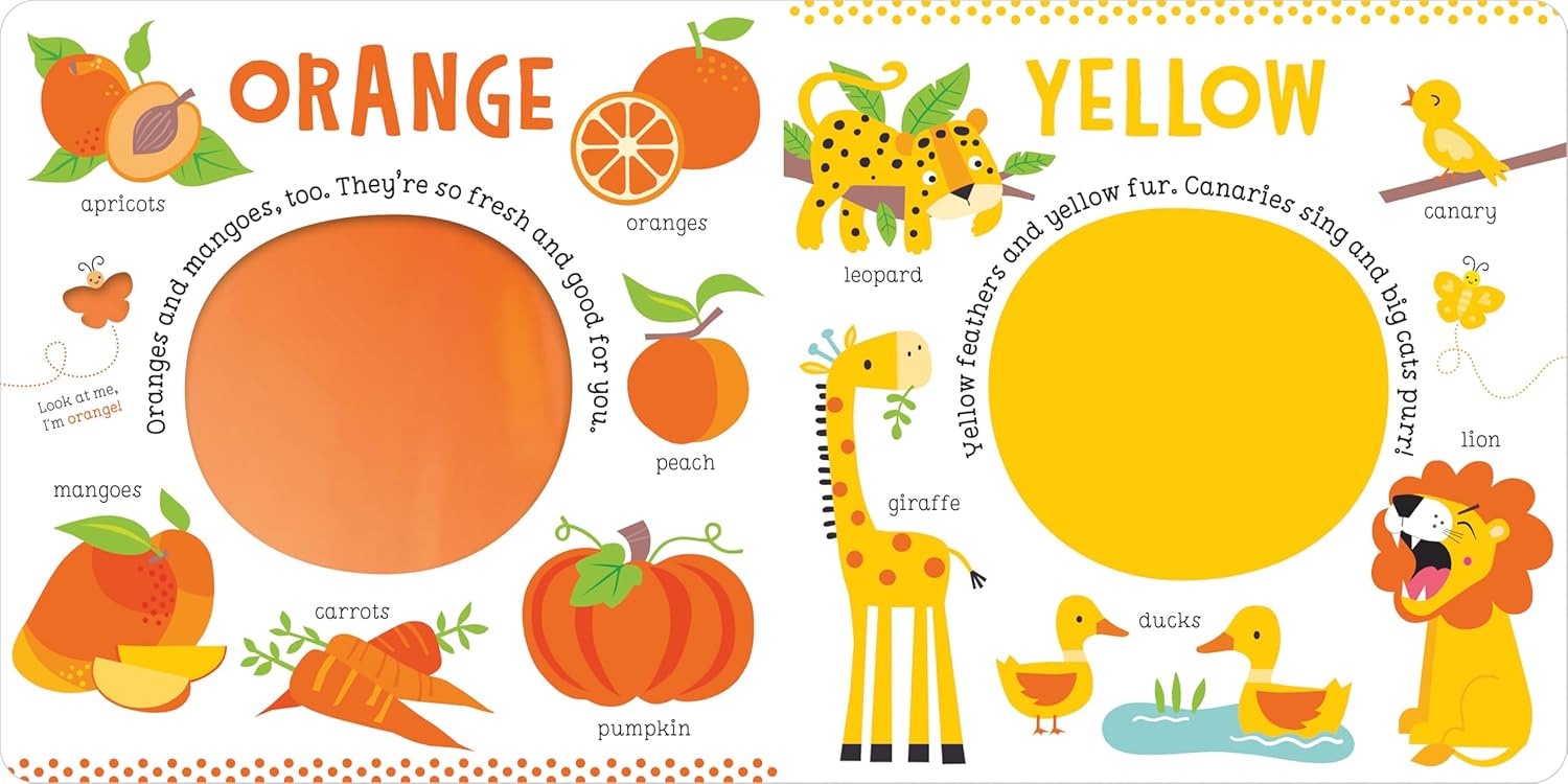 What do you get when you mix the colors of the rainbow? Turn the clever pages in this book to mix the colorful acetate windows and find out! This creative format offers a fun and interactive introduction to first colors and a rainbow of first words to discover!