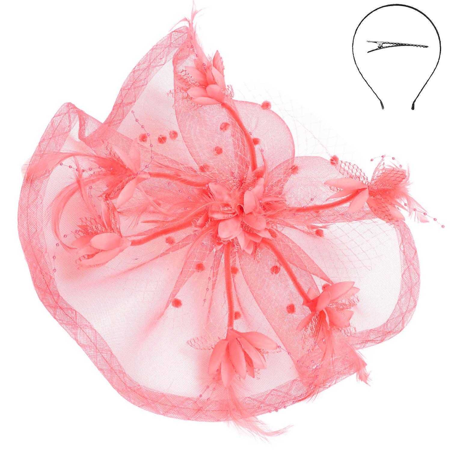 Floral Feathered Sinamay Mesh Fascinator – Darling State of Mind