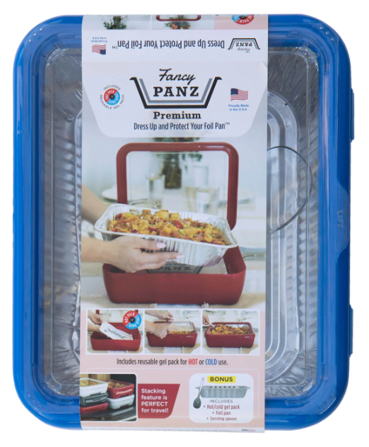 Fancy Panz dresses up and protects your foil pan. Perfect for tailgating, potlucks, holiday gatherings, office parties, catering and home. Travel in style and confidence.