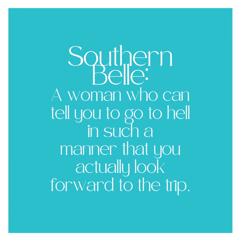 "SOUTHERN BELLE: A woman who can tell you to go to hell in such a manner that you actually look forward to the trip.", cocktail napkin is perfect for your next girls’ night or cocktail party! This cyan blue and white cocktail napkin is a fun addition to any party or luncheon! Both men and women love this fun saying! Mary Phillips cocktail napkins toss out the underlining element of fun and attitude, making yours an event they’ll not soon forget. You can also pair this little number with a bottle of wine for a most coveted hostess gift! Each pack contains 20 5 x 5 three-ply cocktail napkins *super thick* packaged in polypropylene. Stock up for your next book club or to give to the hostess!