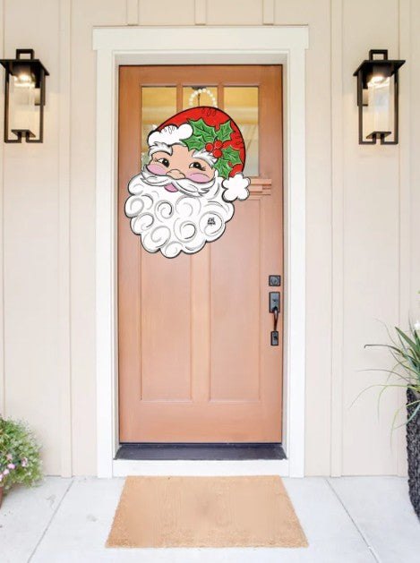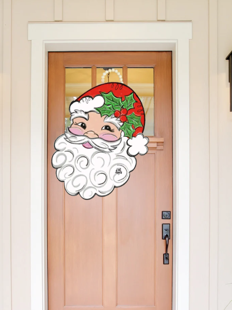 The Santa Hanger Door Hanger is the perfect “jewelry” for your door! Show off your style with a beautifully designed door hanger featuring a jolly Santa face with holly accent. Every DK Door Hanger is UV-printed on moisture-resistant, high-quality 1/4" board and sealed with two coats of gloss finish for lasting protection. Each design includes a fully wired beaded handle for easy hanging and display.