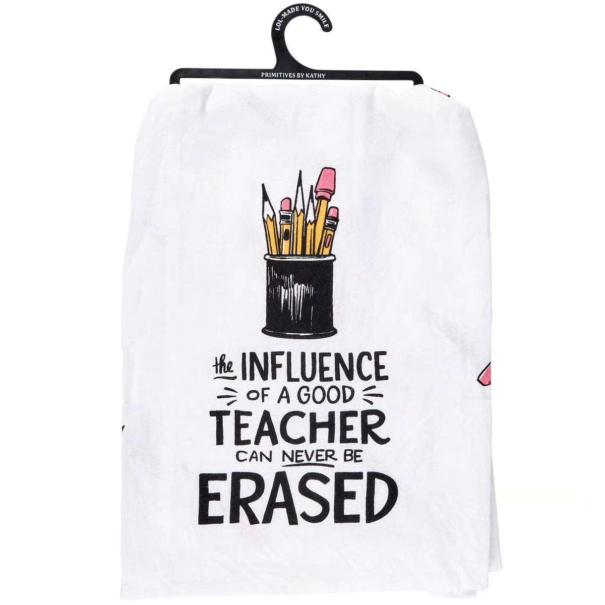Our Good Teacher kitchen towel is machine-washable for convenient cleaning. Packaged on a black plastic hanger to easily display on rack. A fun teacher-themed kitchen accessory perfect for everyday use.