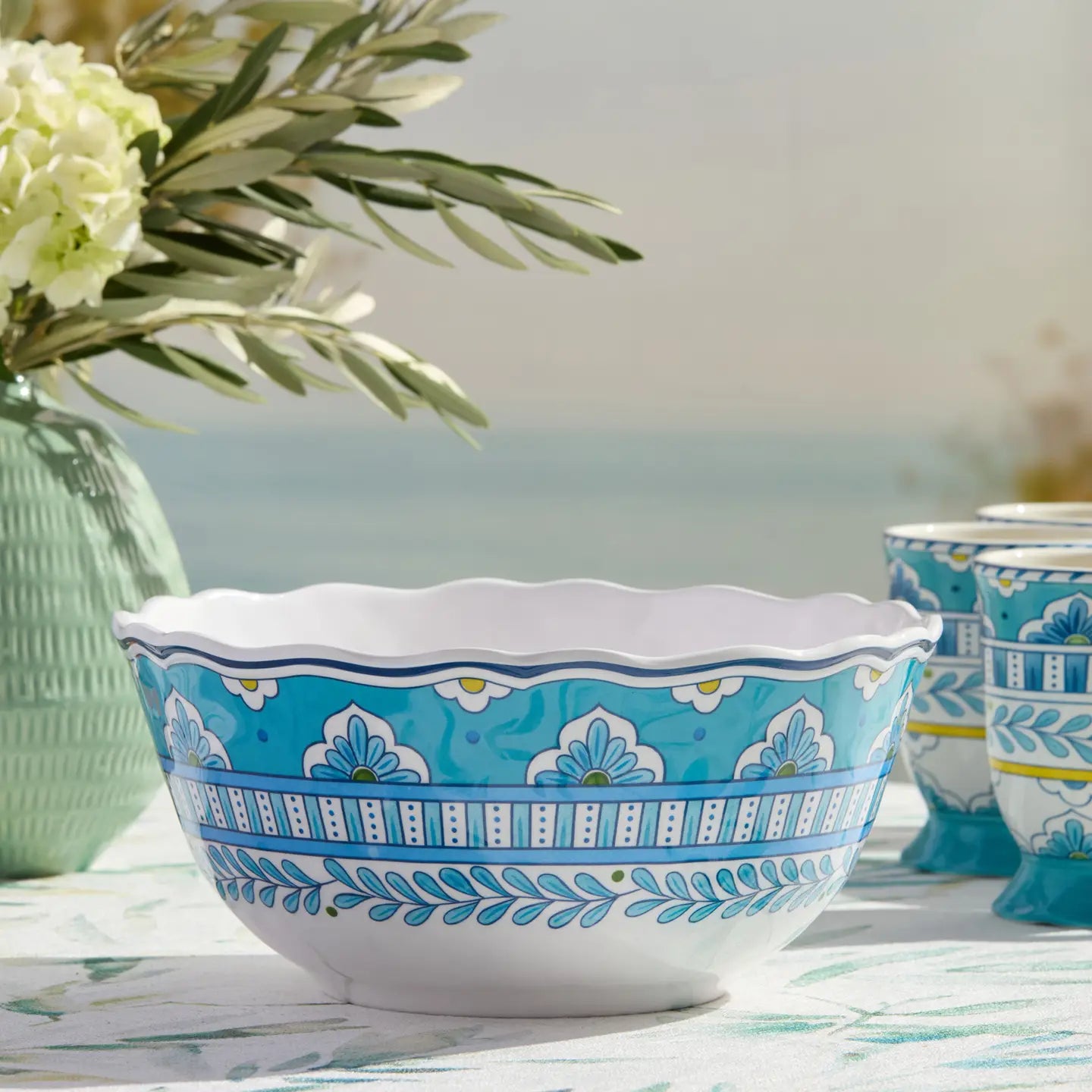 Rich in color and generous in size, the Porto Deep Bowl brings Mediterranean artistry to the heart of the table. Intricate blue and yellow patterns wrap the exterior, while a softly scalloped rim adds an artisanal finish. Crafted from durable melamine, this bowl is ideal for salads, pasta, fruit, or family-style dishes, offering lightweight durability with bold visual impact. Whether used daily or for entertaining, Porto transforms simple meals into moments of connection and celebration.