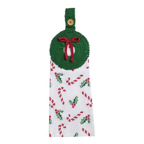 Add a touch of charm and functionality to your kitchen or bathroom with this delightful Wreath Crochet Hanging Towel. Crafted from 100% cotton, this towel offers both softness and durability, ensuring it withstands daily use while maintaining its plush feel. Measuring 19" x 6", it provides ample coverage for drying hands or dishes. The unique design features a crochet loop and an adorable character topper, allowing for easy hanging on any hook or handle, keeping your space tidy and organized. Perfect for adding a festive or whimsical touch to your home decor, this towel is not only practical but also a stylish accent piece. Ideal for gifting or personal use, it brings a cozy, handmade feel to any room.