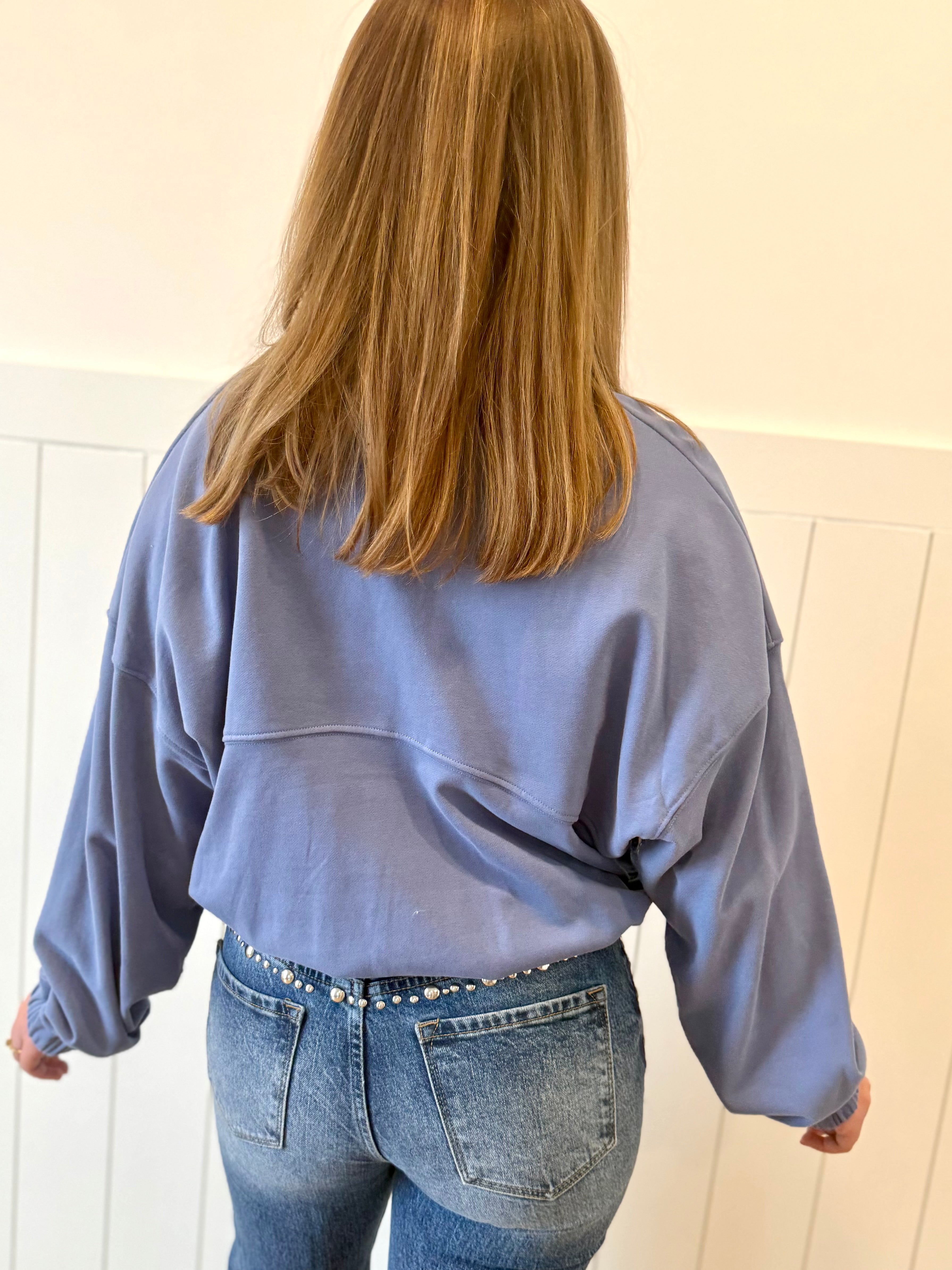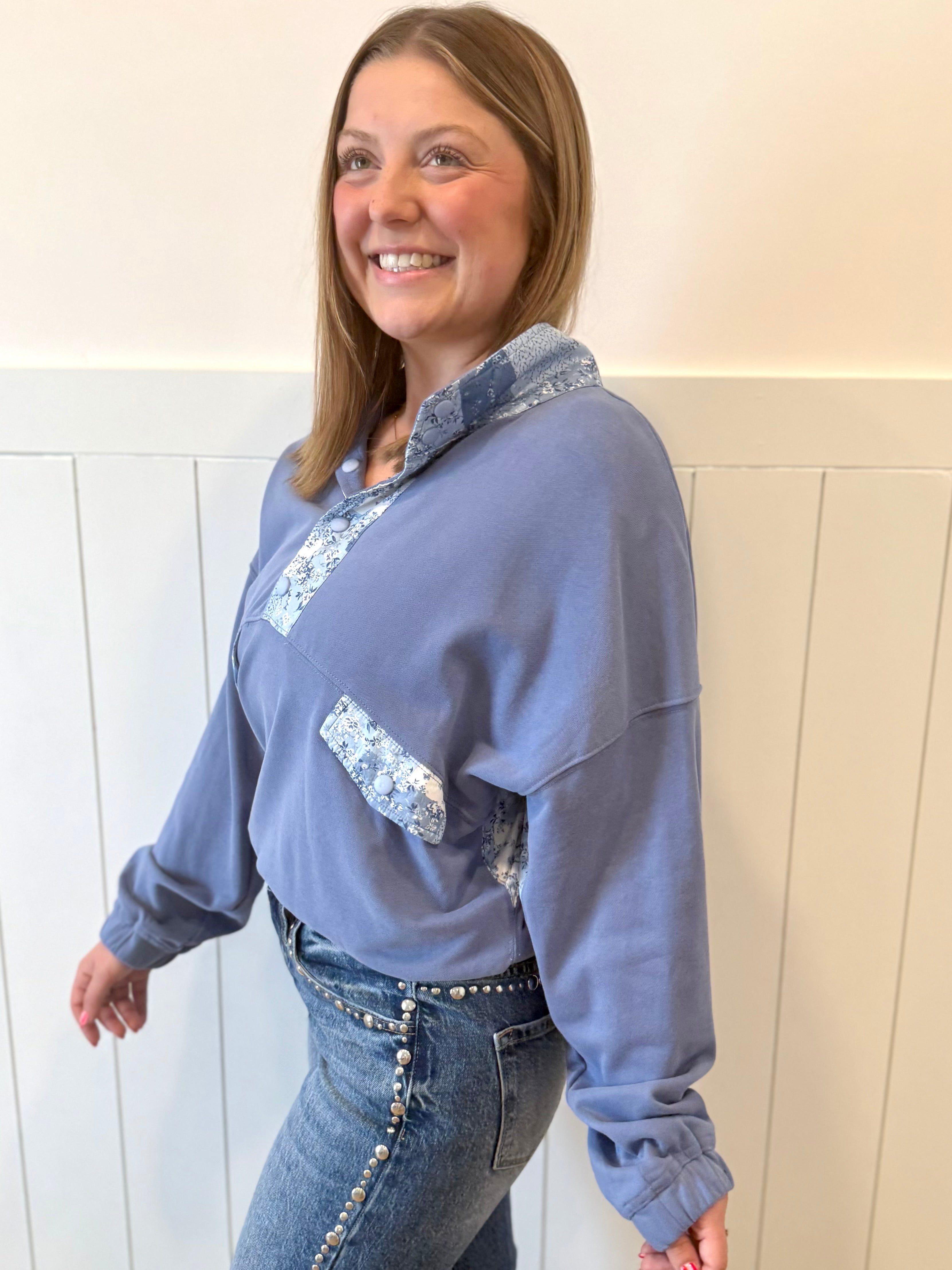 Fall in love with this charming blue pullover, adorned with delicate floral details that bring a touch of garden-inspired magic to your wardrobe! The soft, cozy fabric feels like a warm hug, while the pretty flower accents add just the right amount of whimsy to your everyday look. Whether you're pairing it with jeans for a casual vibe or dressing it up for something special, this pullover is the perfect way to add a little extra sweetness to your style. It's comfort meets cuteness in the most delightful way!