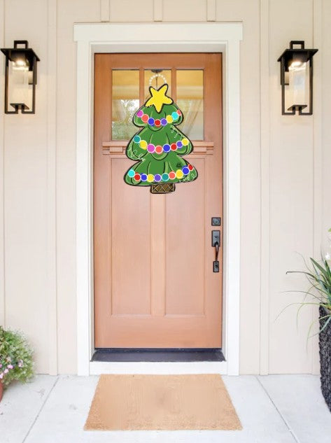The Colorful Christmas Tree Door Hanger is the perfect “jewelry” for your door! Show off your style with a beautifully designed door hanger featuring a classic star-topped Christmas tree with colorful stringed light. Every DK Door Hanger is UV-printed on moisture-resistant, high-quality 1/4" board and sealed with two coats of gloss finish for lasting protection. Each design includes a fully wired beaded handle for easy hanging and display.