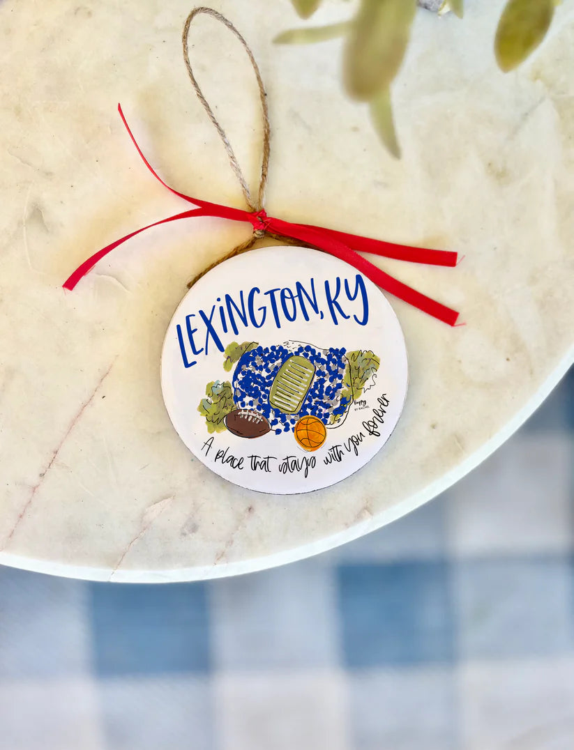 Looking for a special, one of a kind ornament to gift your favorite graduate, alumni, or college football fan? Our Lexington, KY wood and enamel ornament is the perfect gift for decorating your tree! Use it as an ornament, a large gift tag, or to hang year-round reminding you of your favorite place on earth.