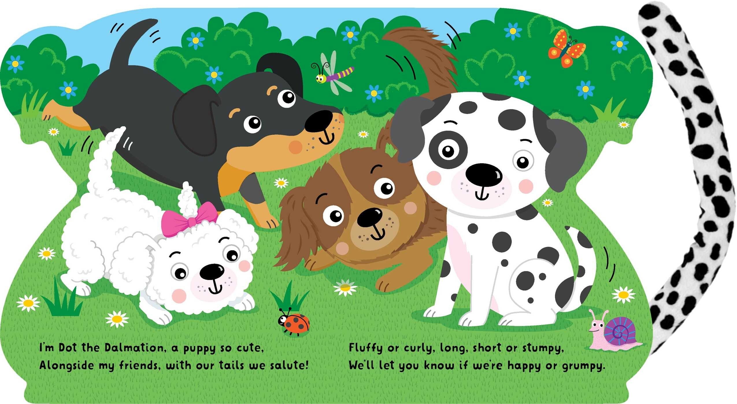 This die-cut book in the shape of a puppy with tactile furry tail will delight little readers!