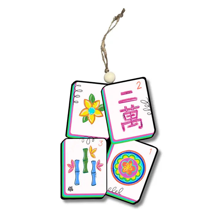 The Mahjong Ornament is a festive accent for any space! Show off your holiday style with a beautifully designed ornament featuring Mahjong game pieces. Every DK Ornament is UV-printed on moisture-resistant, high-quality 1/4" board and sealed with two coats of gloss finish for lasting protection. Your ornament is hung using a jute rope accented with a single wooden bead. Bring holiday cheer to any room with a DK designed ornament.