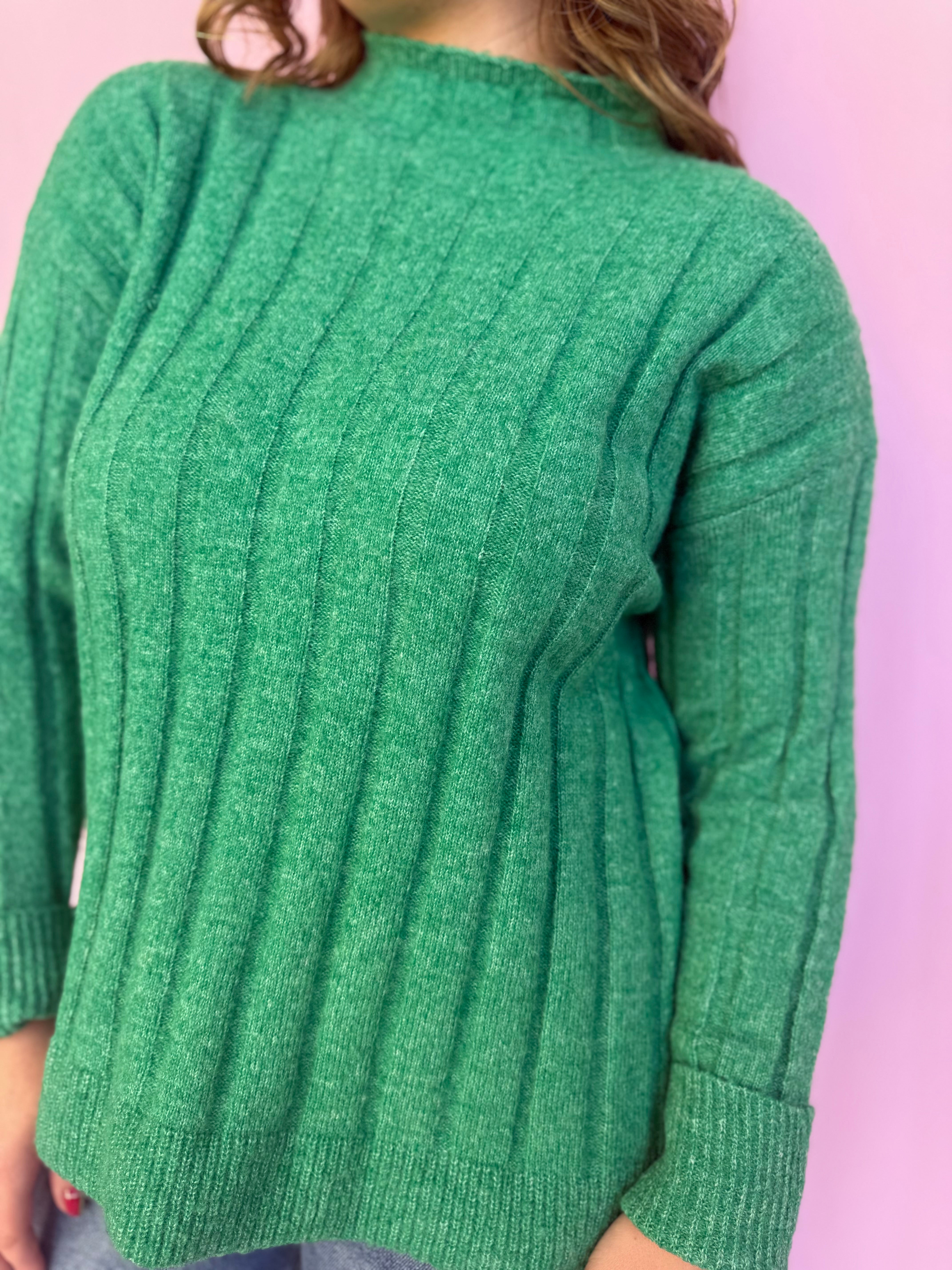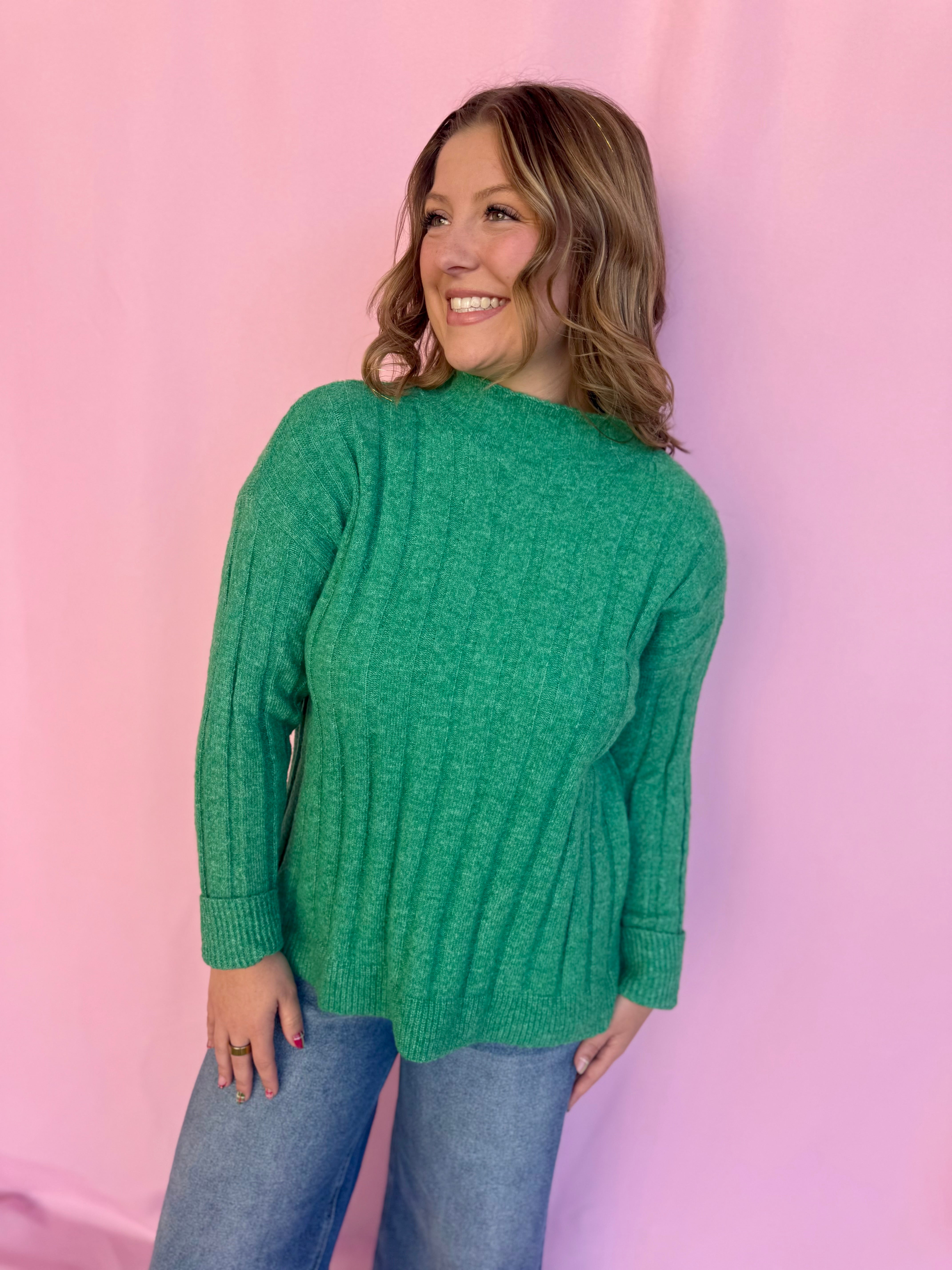 Cozy meets chic with this lovely green mock neck sweater that's perfect for year-round styling! The timeless mock neck adds a polished, put-together feel while the soft fabric keeps you comfortable all day long. Layer it under slip dresses, pair it with your favorite bottoms, or wear it solo for an effortlessly sweet look. A wardrobe essential that brings warmth, style, and that darling touch to every outfit!