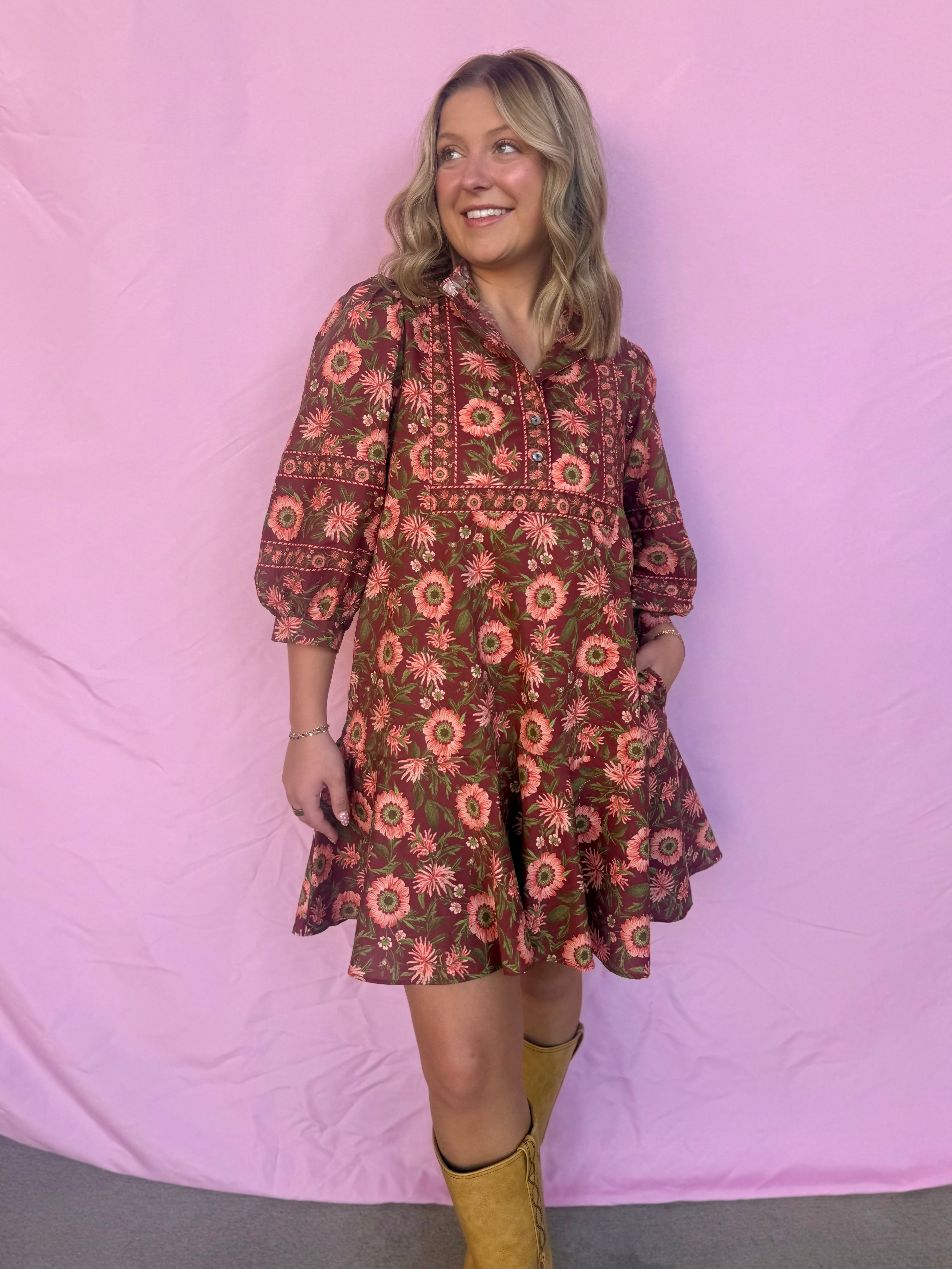 The Worldly Treasures Dress is your perfect go-to for flirty, fun days! Featuring a charming floral pattern and long sleeves, this mini dress adds a touch of sweetness to your look while keeping you cozy. Its playful silhouette makes it easy to dress up or down, whether you’re headed to brunch or a weekend getaway. Embrace your bubbly side with this sweet and stylish staple!