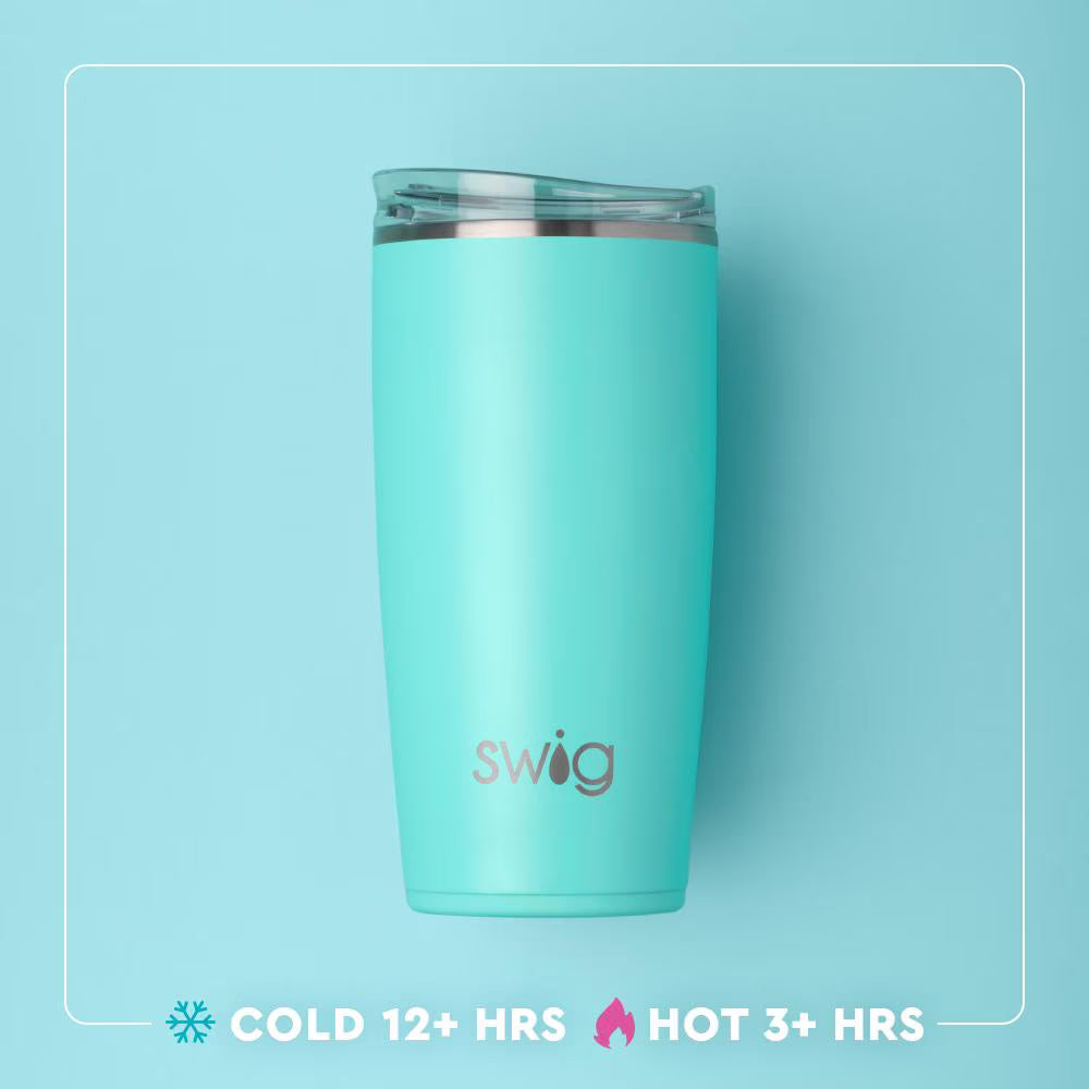 Perfect for whatever or wherever you drink! Squeeze the day with these freshly picked lemons and charming polka dots on a glitter sky-blue background. Our 22oz insulated Tumbler's tapered silhouette makes it perfect for on-the-go sipping. From sweet tea to hot toddies, this Swig will definitely be your new fave!