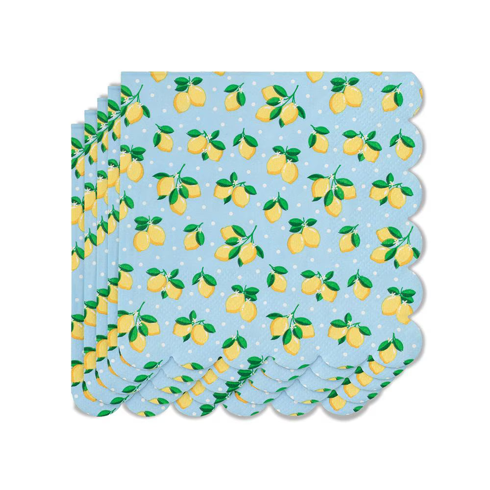 Elevate your celebration! Squeeze the day with these freshly picked lemons and charming polka dots on a sky-blue background. Be the perfect hostess with these 3-ply paper guest napkins. Great to buy in bulk for parties or gift to neighbors or friends and family. Package includes 20 napkins. Napkin measures 5"x5" when folded.