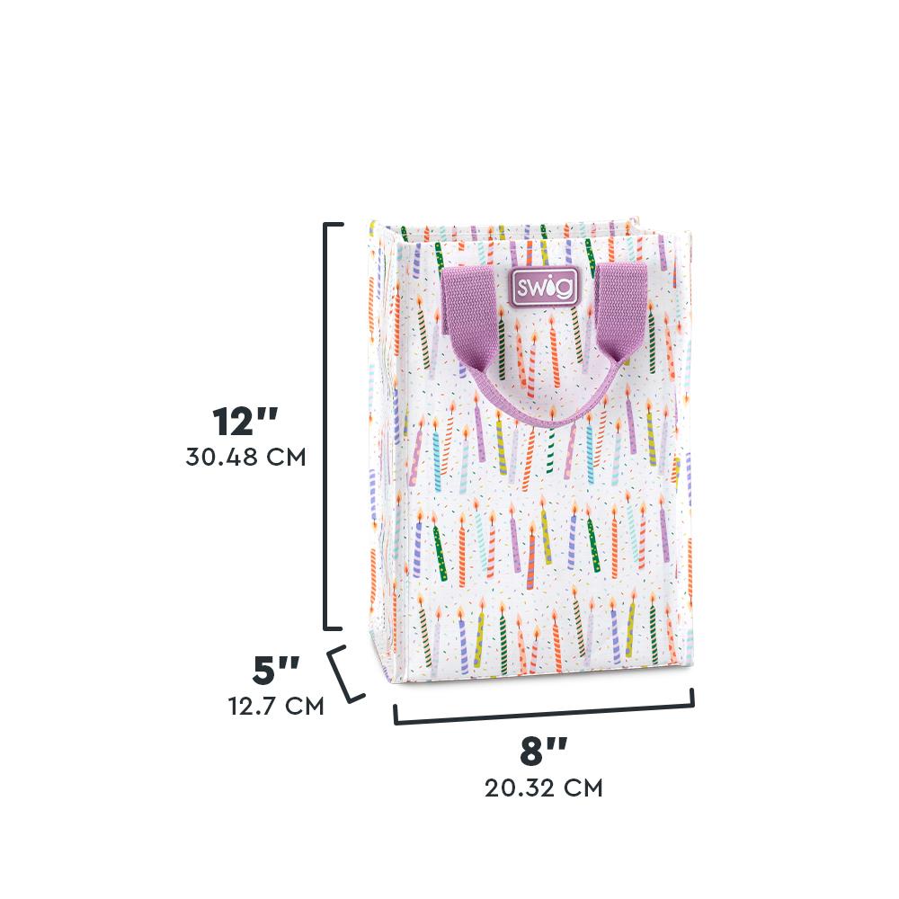 Swig Life's Reusable Bags are perfect for all of life's celebrations; birthdays, weddings, and holiday parties, and are a go-to favorite for everyday use. This tall reusable bag is ideal for medium-sized gifts, like slippers or gloves and scarves, and can be used to gift our Mega Mugs and accessories. Pack this for girl's night; it fits two wine bottles and two Stemless Wine Cups!