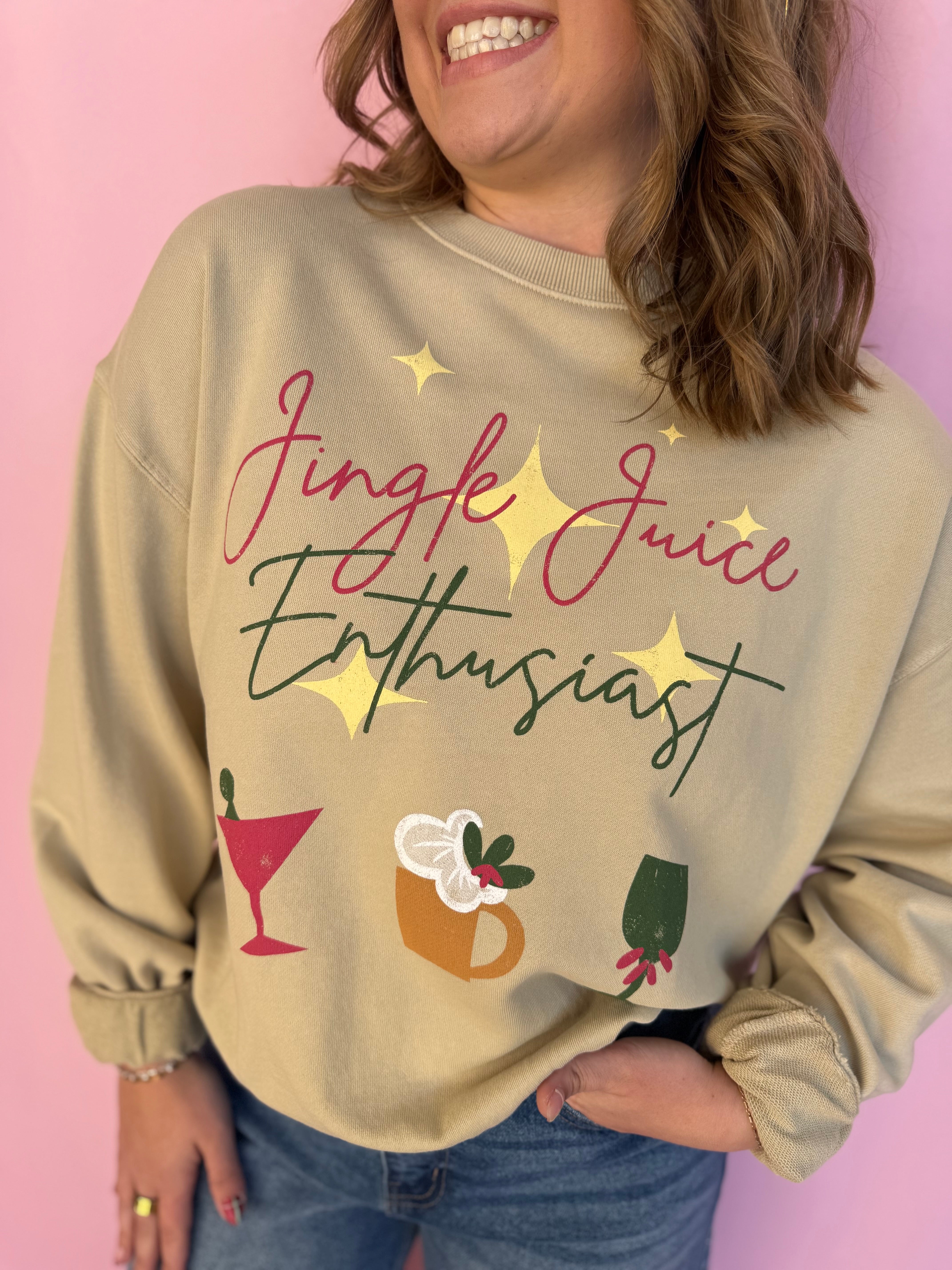 Celebrate the festive season in cozy style with the Jingle Juice Enthusiast Sweatshirt. This soft, comfy sweatshirt features a playful graphic perfect for spreading holiday cheer. Whether you're sipping your favorite seasonal drink or just embracing the jolly vibes, this sweatshirt adds a sweet and bubbly touch to your holiday wardrobe.
