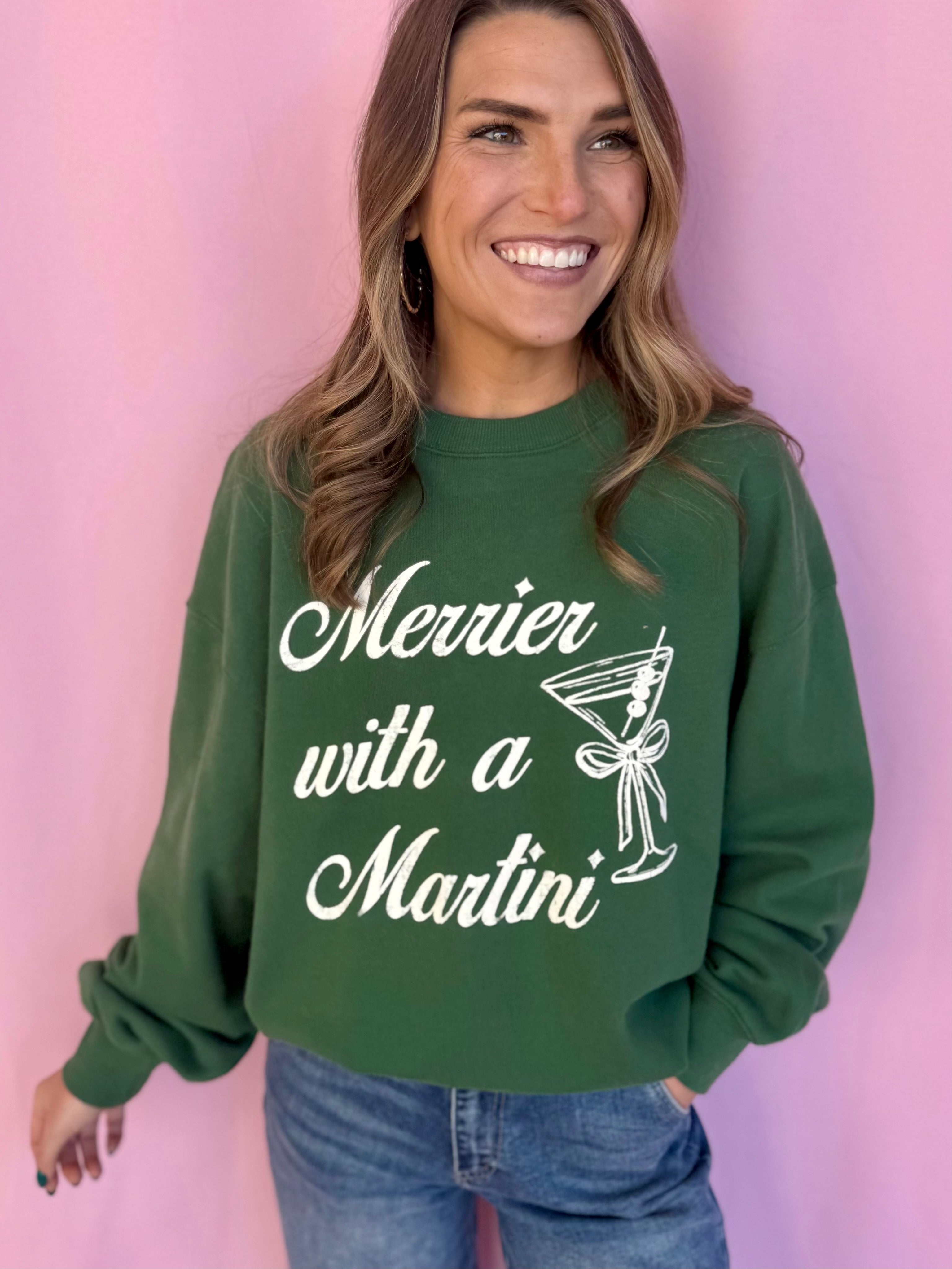 Cozy up in the Merrier With A Martini Sweatshirt, perfect for those who love a little sparkle with their comfort. This soft, stylish sweatshirt features a playful graphic that adds charm to your casual look. Ideal for relaxing weekends or catching up with friends, it’s your go-to for warmth and a touch of fun. Embrace the sweet and bubbly vibe every time you wear it!
