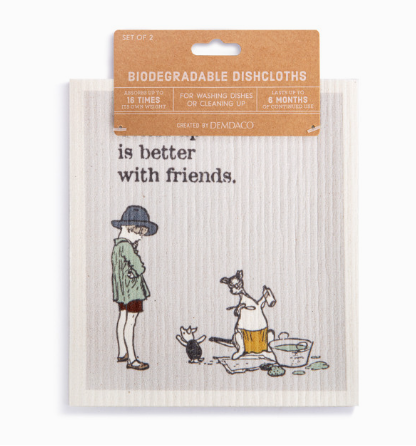 The Biodegradable Dish Cloths Set of 2 - Better With Friends is your new right hand in the kitchen. This off-white and black kitchen accessory is a must-have for all your baking, cooking and hosting needs!