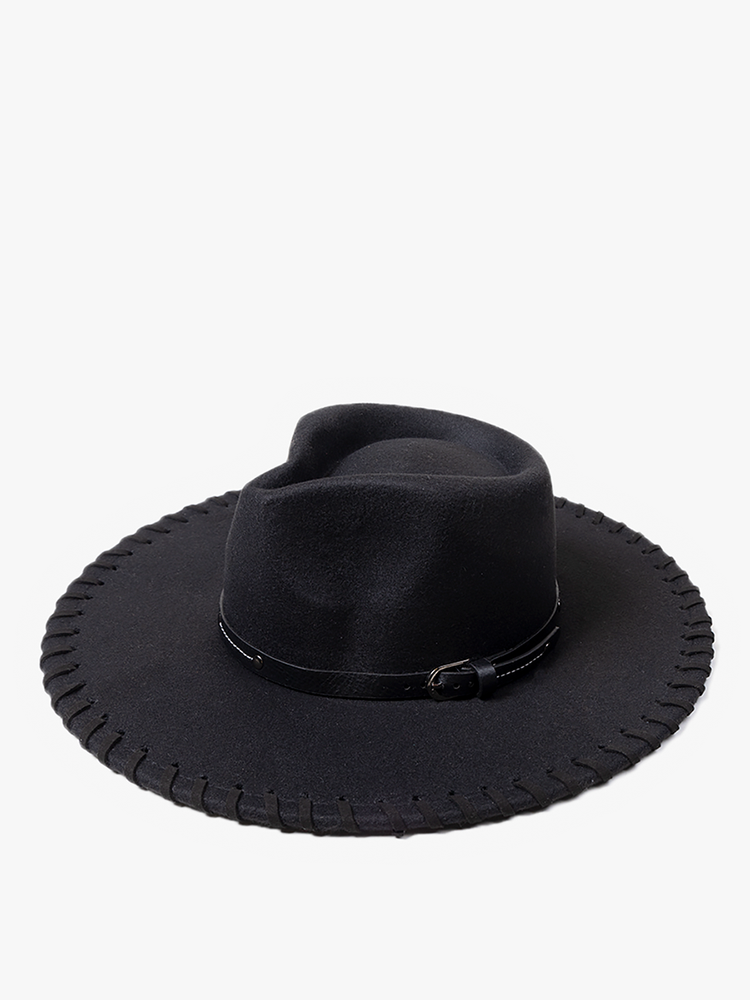 This wide-brim fedora, with a touch of vegan leather, is the choice for those wanting a hat that harmonizes haute couture with heart. Dimensions: 15.2"L x 14.5"W x 4.5"H