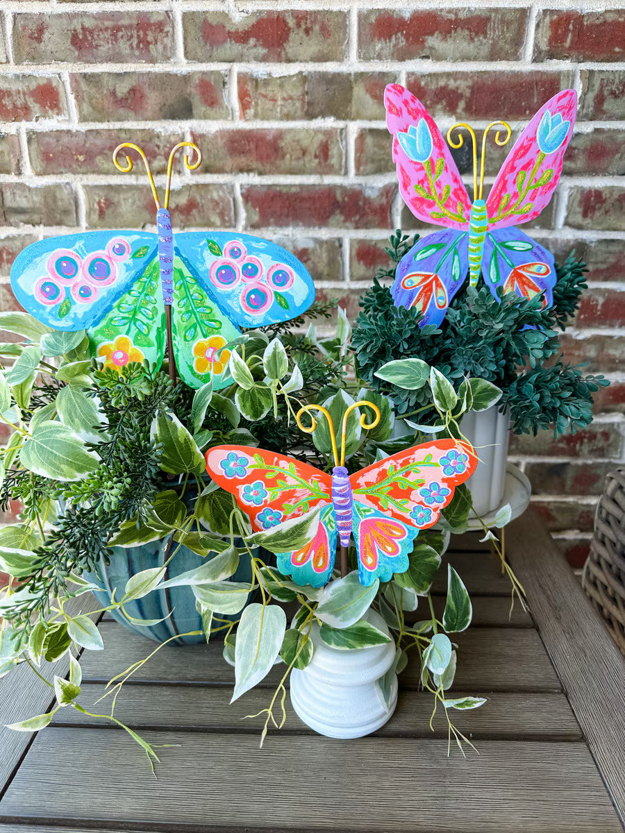 Bring whimsical charm to your garden with this delightful metal butterfly stake! Perfect for flower beds, patios, and outdoor spaces, this decorative piece adds a touch of nature-inspired elegance wherever you place it.