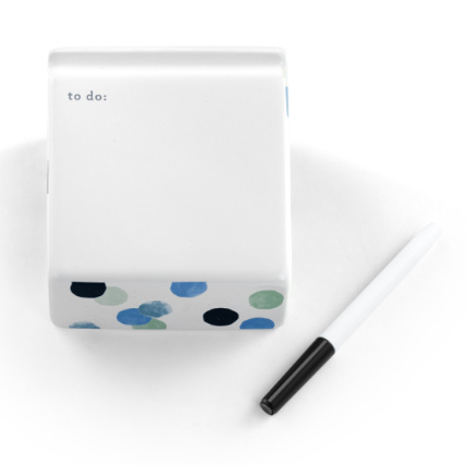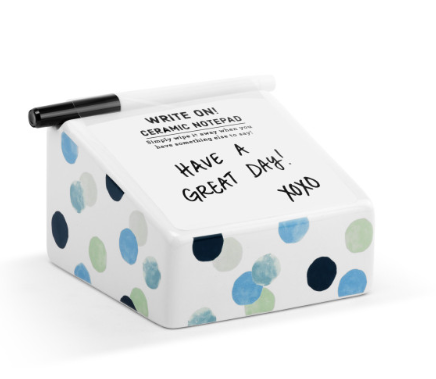 A kitchen accessory that is environmentally friendly! The Blue Dots Write On! Ceramic Notepad allows you to easily make and erase notes! A fun gift for a new homeowner.