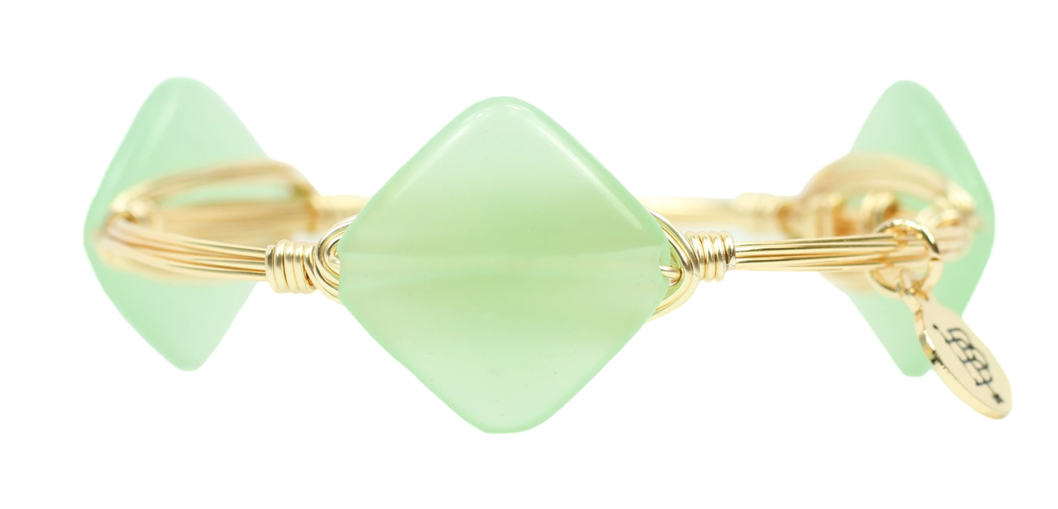 Gold plated copper wire-wrapped bangle adorned with three stones. Stones may vary in size, shape or color.