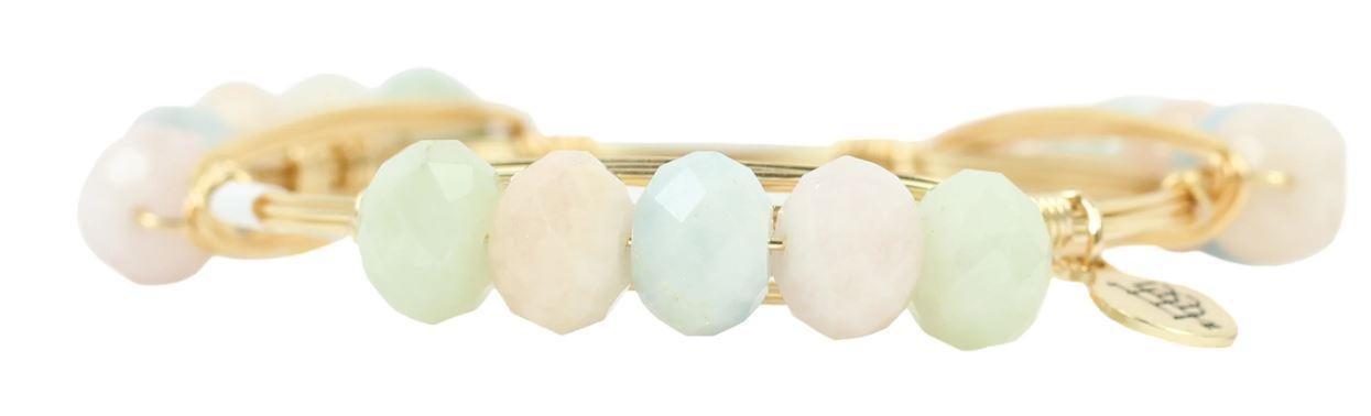 Gold plated copper wire-wrapped bangle adorned with three clusters of stones