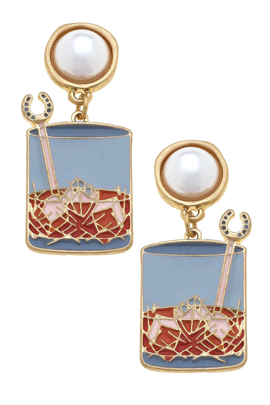 Timeless and elegant, the Bourbon on the Rocks Pearl Drop Earrings feature rich blue and amber tones. Their classic design pairs beautifully with both casual and formal looks.