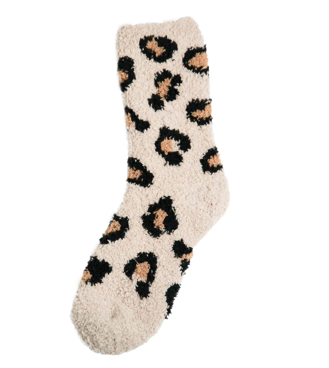 Super soft and fuzzy leopard print socks! Stay warm and stylish with these fun lounge socks! One size
