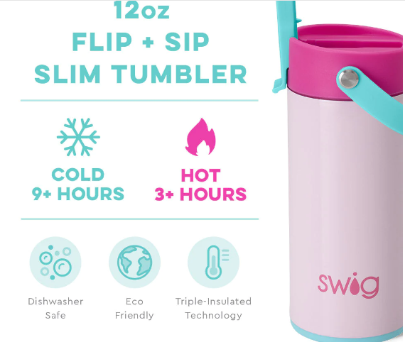 Includes BPA-free Flip + Sip Cap with straw and flex handle