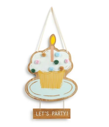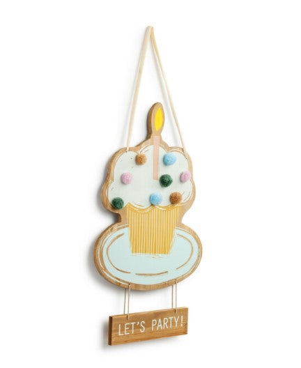 Welcome guests in style with the Let's Party Cupcake Door Hanger! This multi-colored, wooden door hanger is the perfect birthday decoration. A unique and useful gift for anyone who loves to dress up their entryway.
