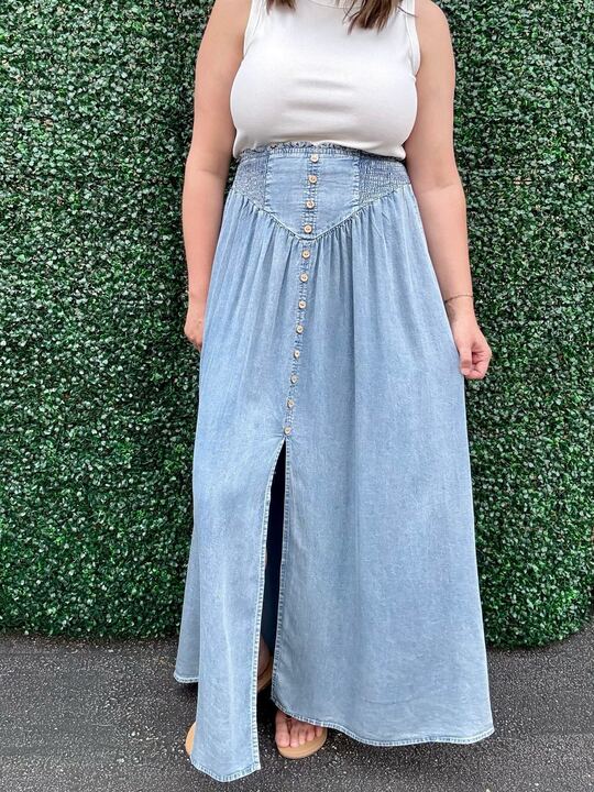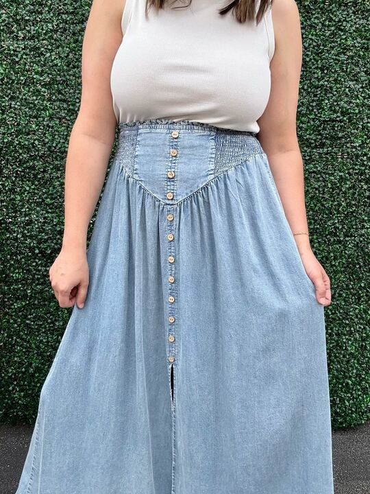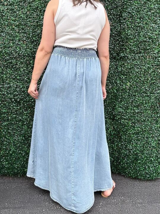 Embrace effortless charm with the Don't Mess Around Skirt, a lightweight denim maxi that flows with every step. Perfect for sunny days and casual outings, its soft fabric keeps you comfy while adding a playful, breezy vibe to your look. Pair it with your favorite tee or a cute blouse for an easy, sweet style that’s ready to brighten any day!