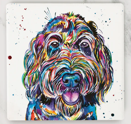 This coaster featuring original artwork by Jenn Seeley will complement any room throughout the home. Equipped with cork backing and made from absorbent ceramic, it is designed for use on any surface.
