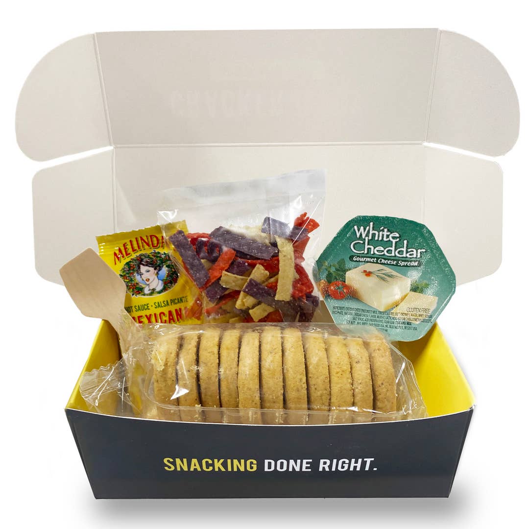 Nacho average appetizer. Smaller portions with the same delicious flavor. This snack kit has taco crackers, cheese, taco sauce, and crunchy tortilla toppings. Everything you need is in the kit. Enjoy!