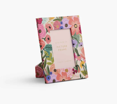 Your memories, framed by flowers. A paper-wrapped frame for a 2.5 x 3.5 photo with an illustrated floral design and a kickstand for display.