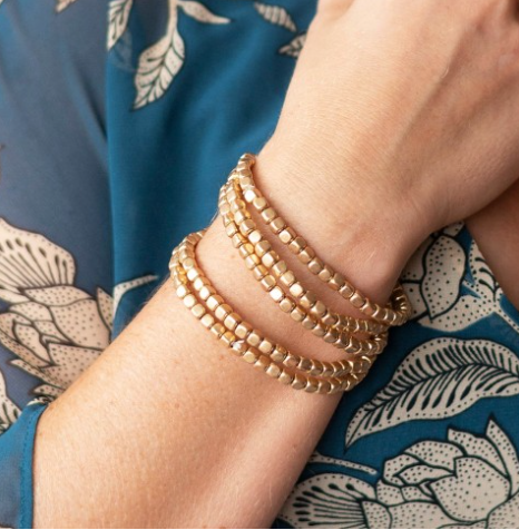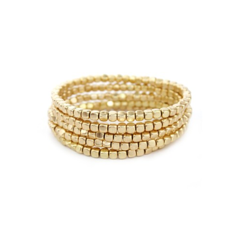 Talk about a classic, this stack features several metallic beaded bracelets that look great all together or ever paired with your favorite watch.