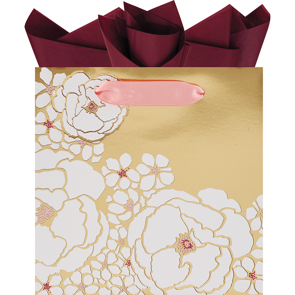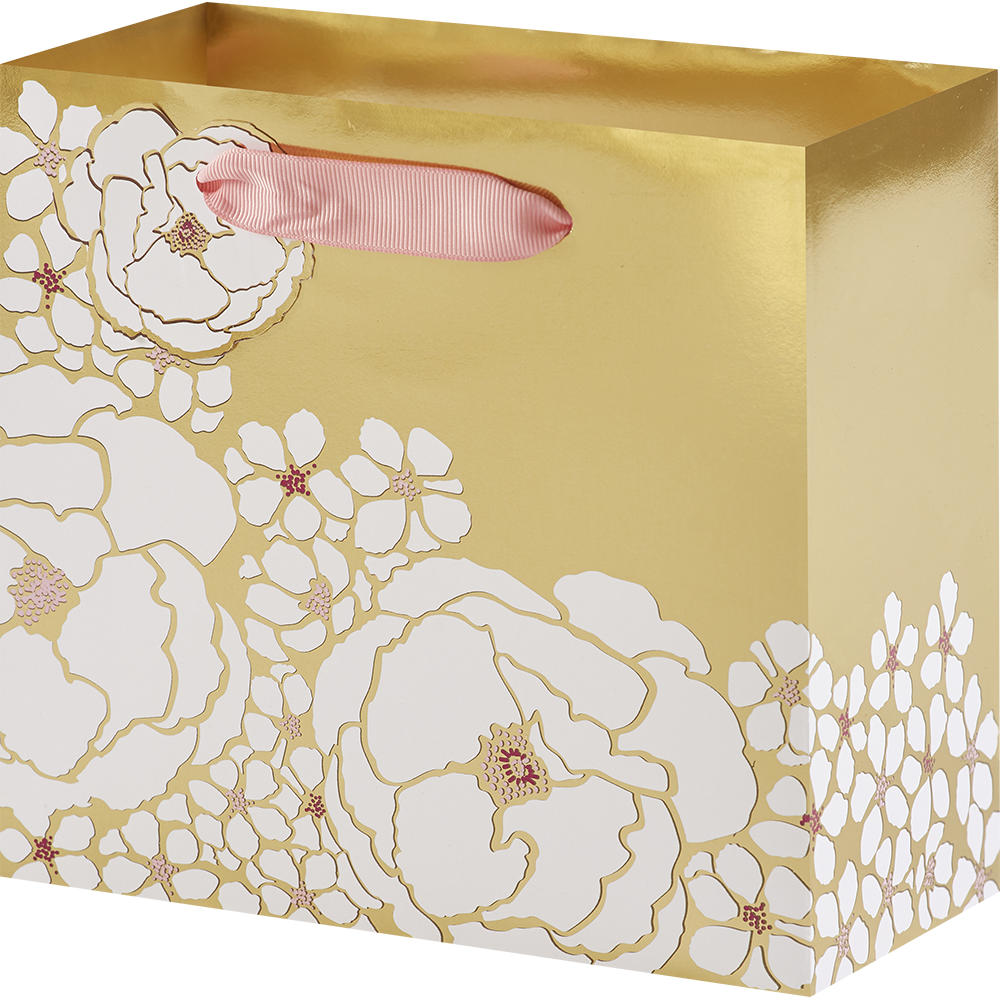 Truffle: Printed on metallic, grosgrain ribbon handles, 7"x 7" x 4"