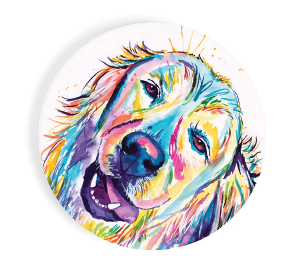 Full of flair and functionality, this car coaster featuring original artwork by Jenn Seeley is made of absorbent ceramic. The bottom features a slanted edge, allowing easy removal and cleaning.
